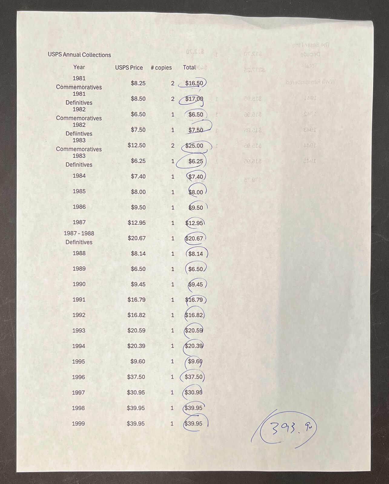 Get Market Data for [United States Collection] Visual Pricing Guide Sample Census