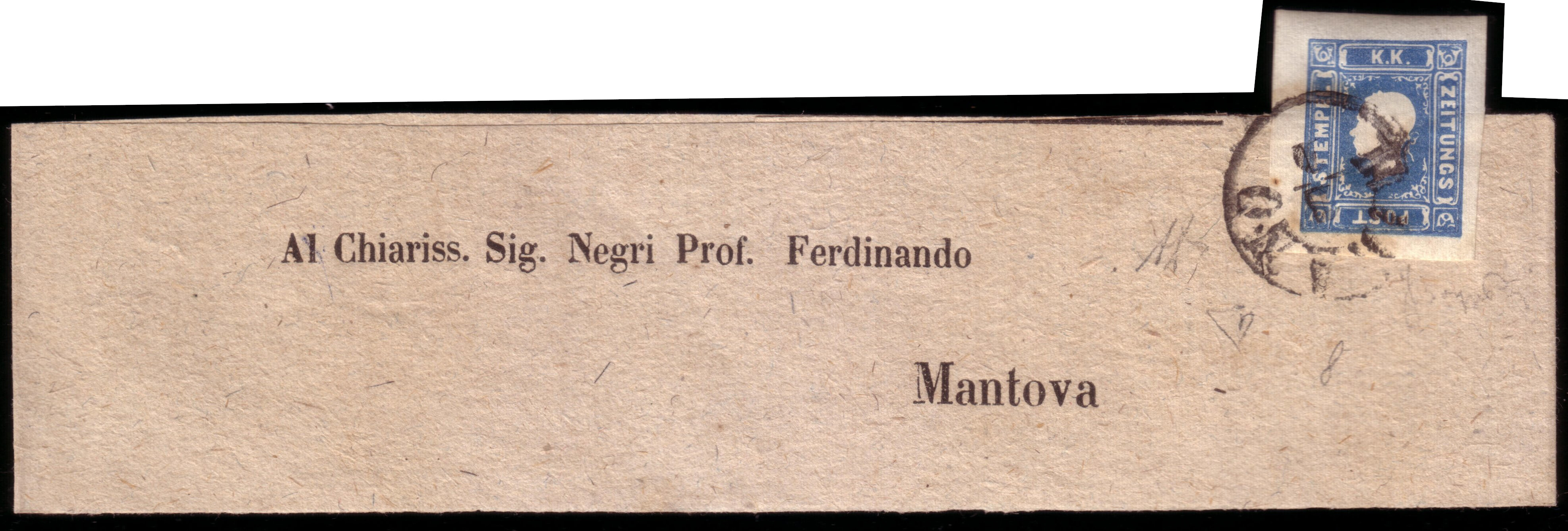 Fascetta da Milano per Mantova, affrancata con (1,05s.) azzurro, I tipo