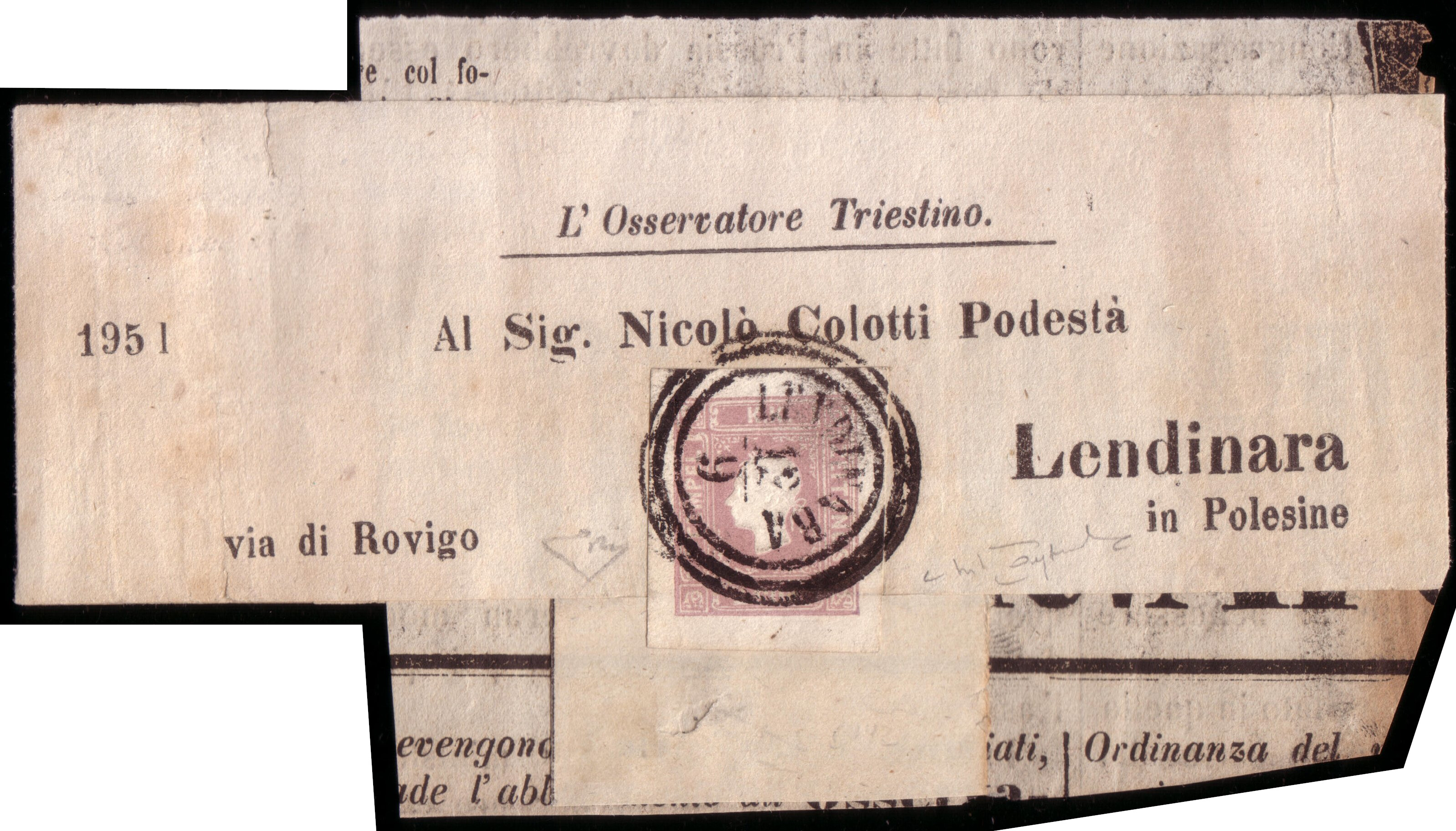 Fascetta da Trieste per Lendinara, affrancata con (1,05s.) lilla grigio chiaro, II tipo