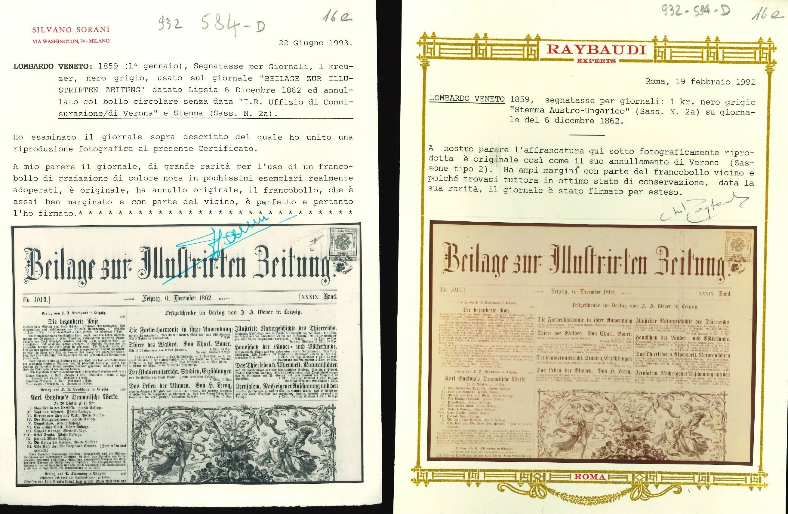Giornale completo "Beilage Zur Illustrirten Zeitung" edito a Lipsia (Sassonia) per Verona, tassato con 1kr. nero grigio
