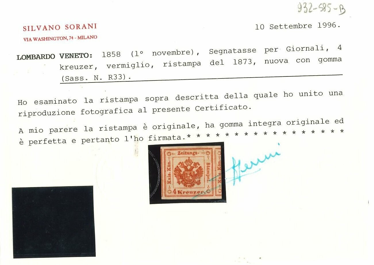 Cert. En. Diena, G. Bolaffi. Signed A. Diena, A. G. Bolaffi