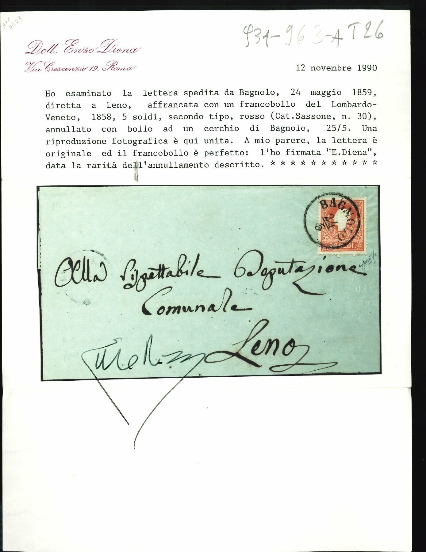 Cert. A. Diena, En. Diena. Signed L. Gazzi