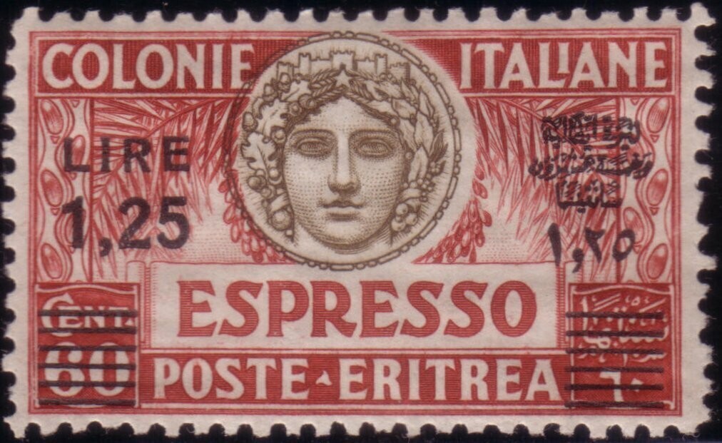 Espressi. 1,25 lire/60c. carminio scuro e bruno, soprastampa nera, D.11