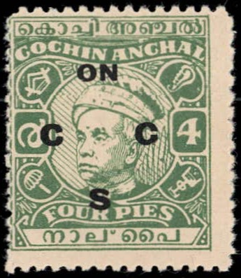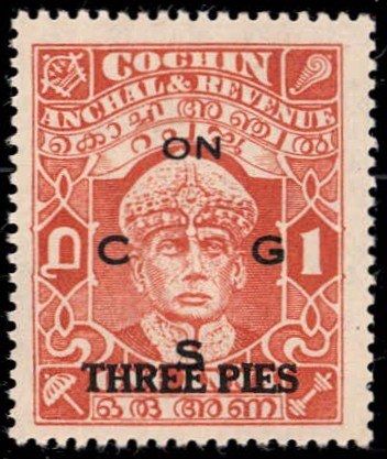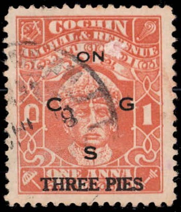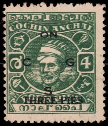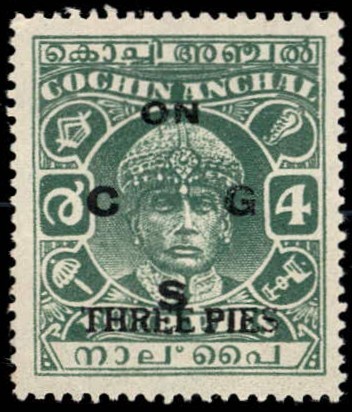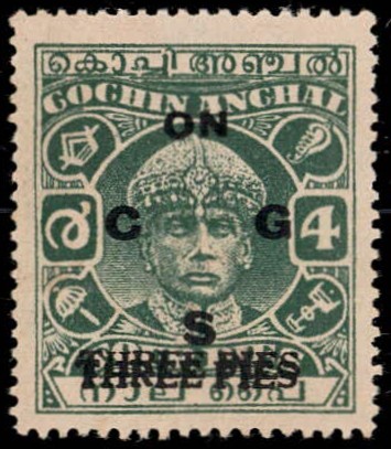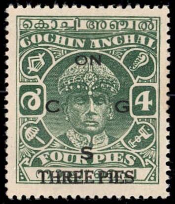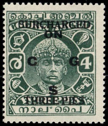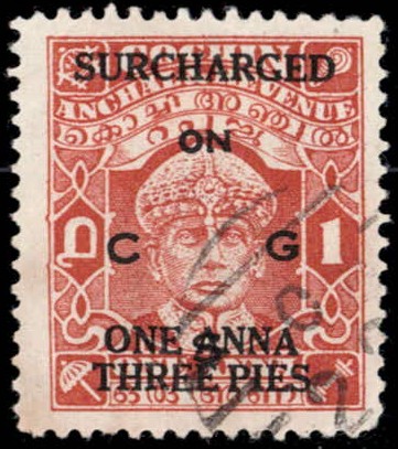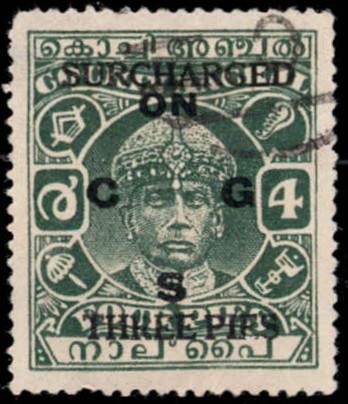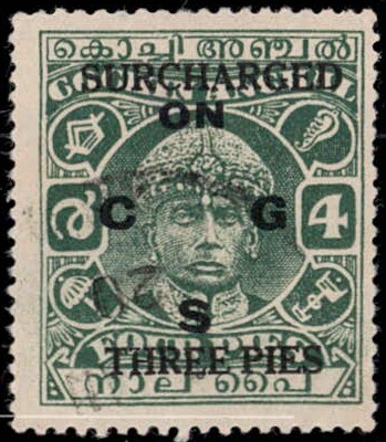 overprinted ON C G S surcharged "SURCHARGED / THREE PIES" (Image)