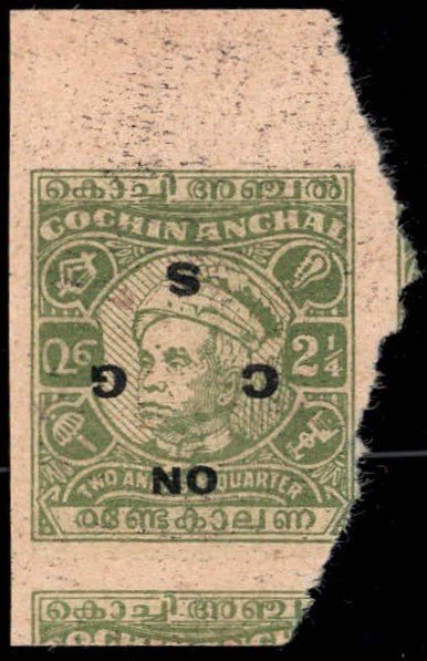 overprinted ON C G S with error, stamp printed double (blanket offset) (Image)