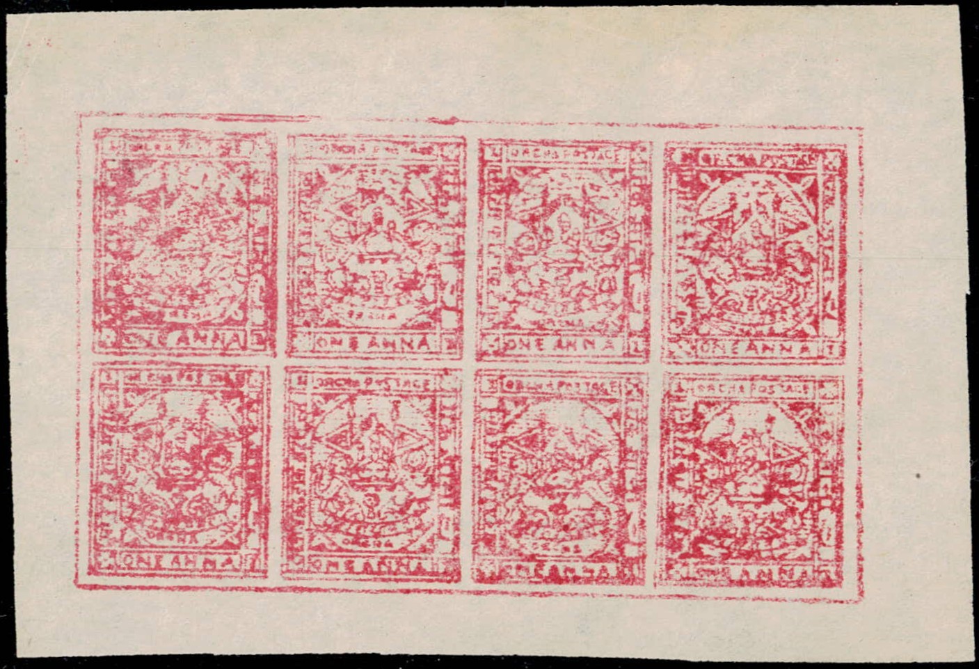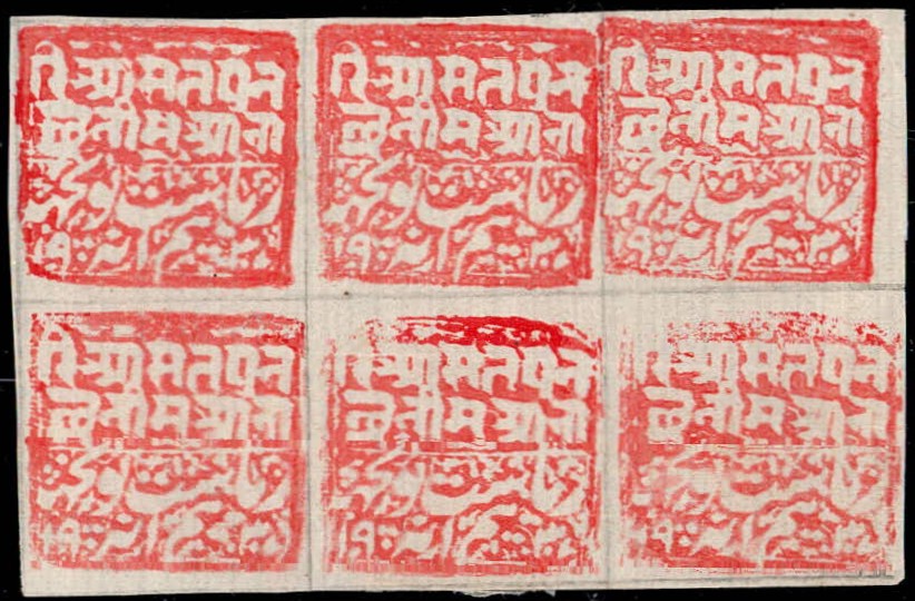 white ribbed batonne paper, block of 6. Unused without gum as issued (Image)