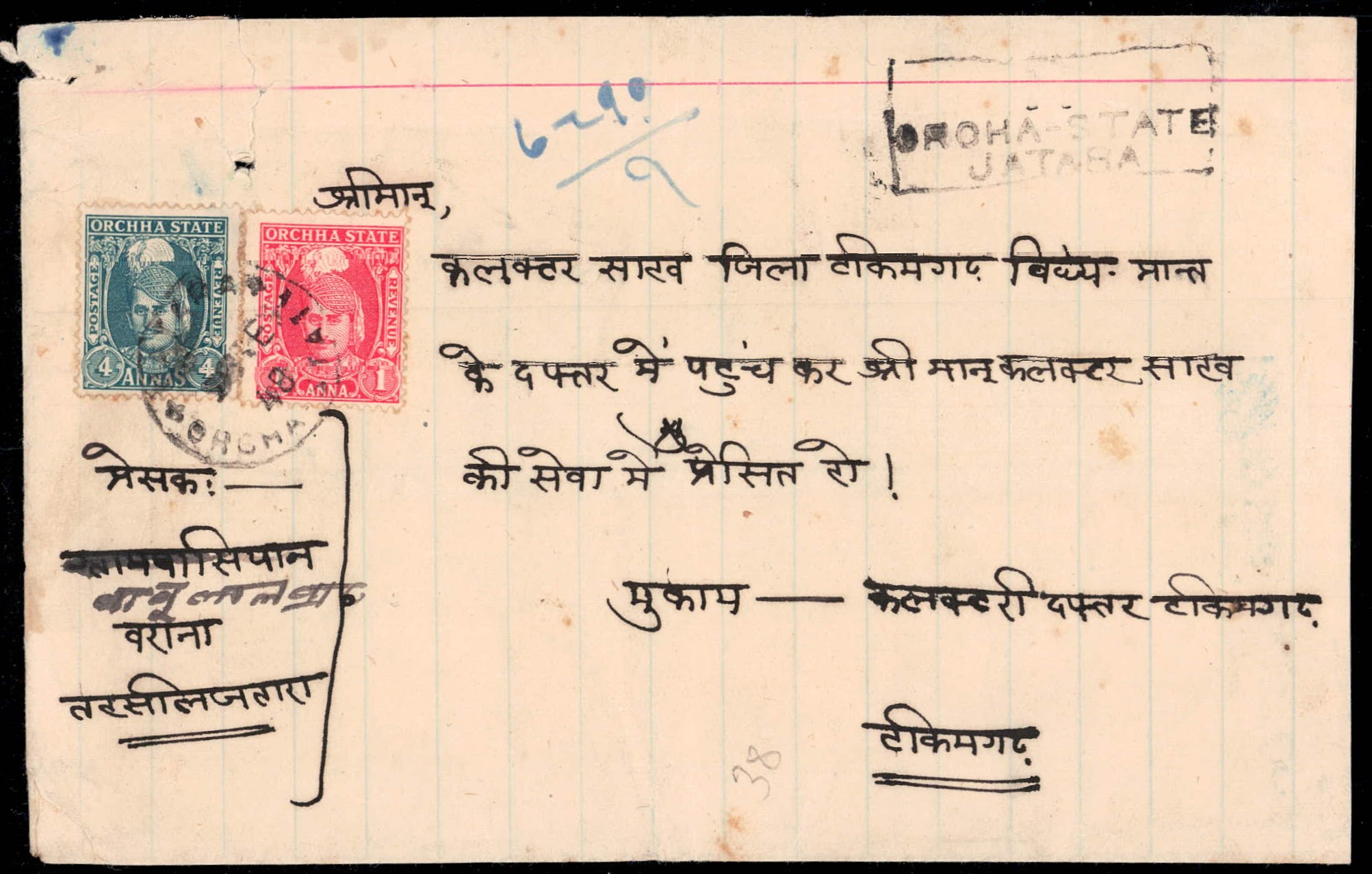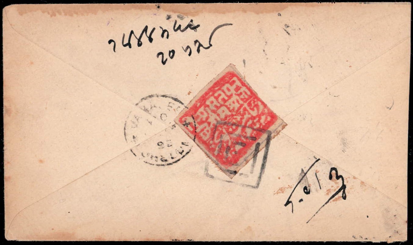 stationery envelope additionally franked with Poonch ½a red on yellowish white wove paper tied by Poonch concentric of squares cancel. (Image) (imagea)