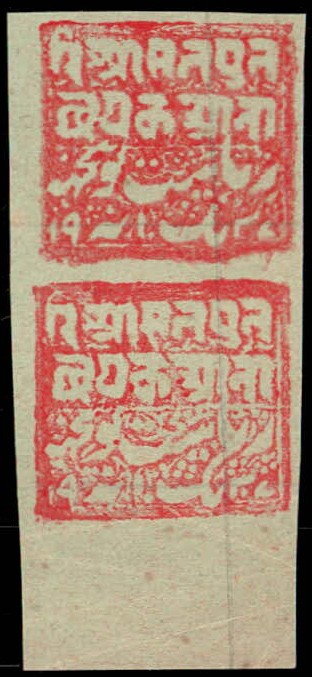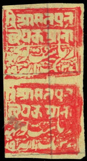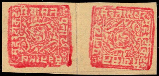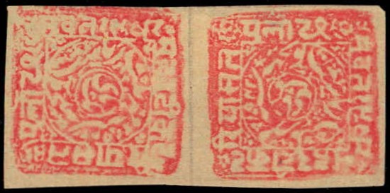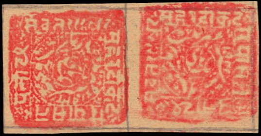 orange-buff wove batonne paper with error, pair one stamp sideways. Unused without gum as issued (Image)