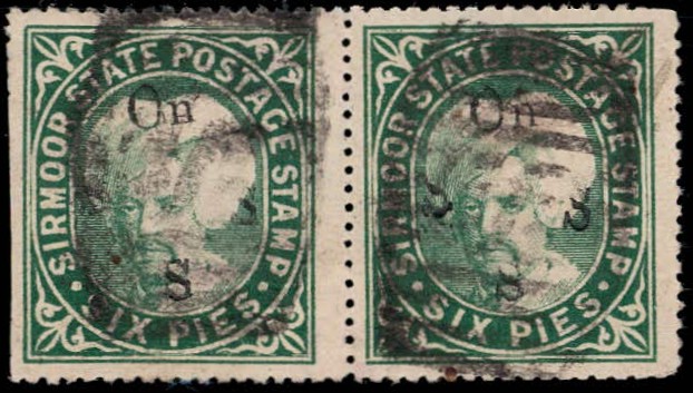 green handstamped On S S S with SG Type 19, horizontal pair (Image)