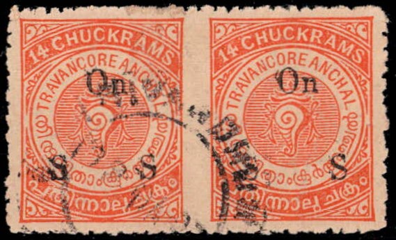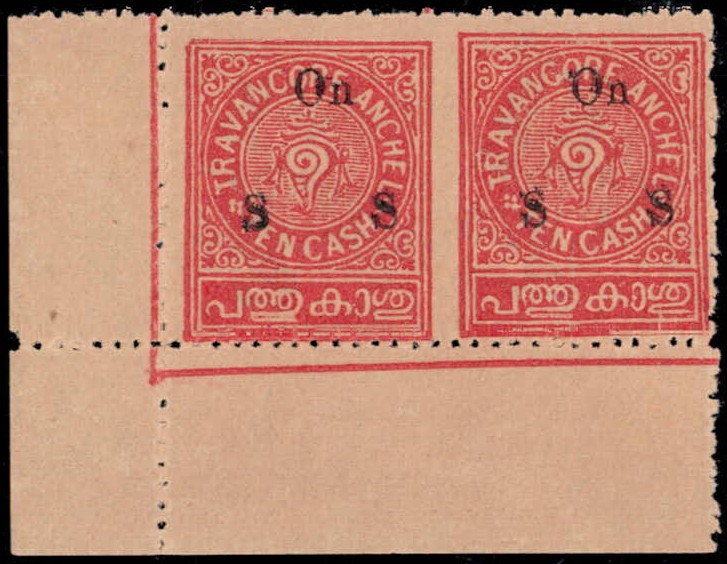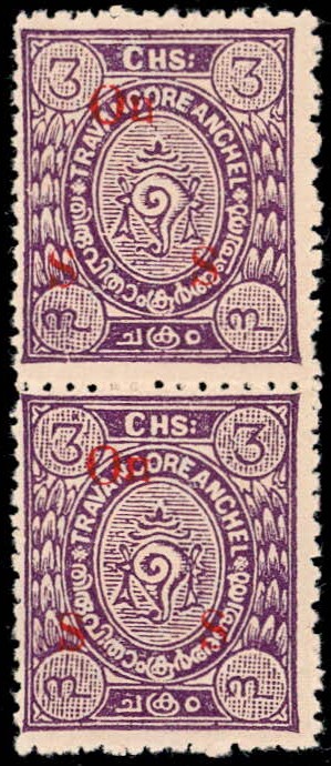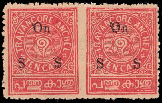 violet overprinted On S S in red, vertical pair. Unused without gum as issued (Image)