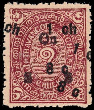 surcharged 1ch 8ca overprinted On S S with error, surcharge inverted. (Image)