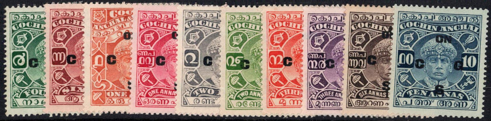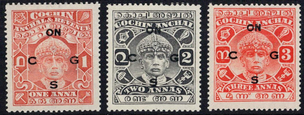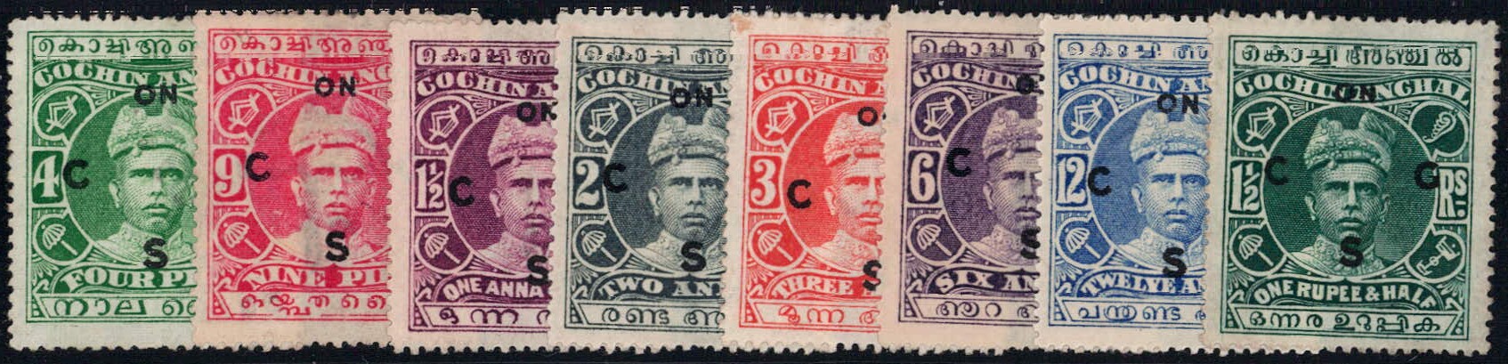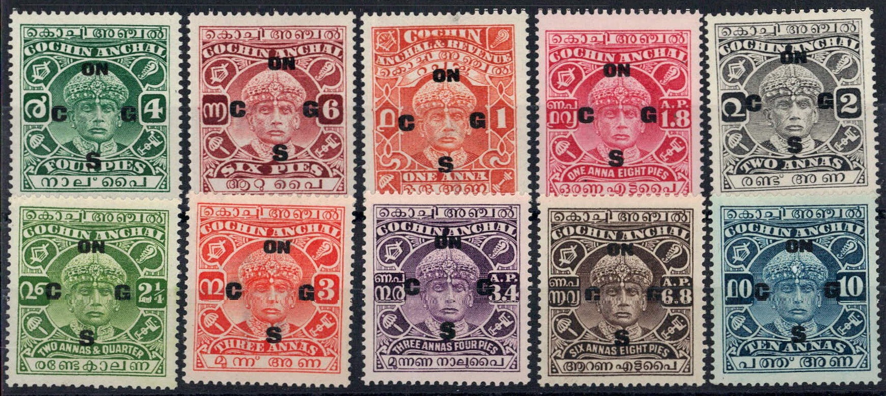 overprinted ON C G S complete set, mint with some values unused without gum. (Image)
