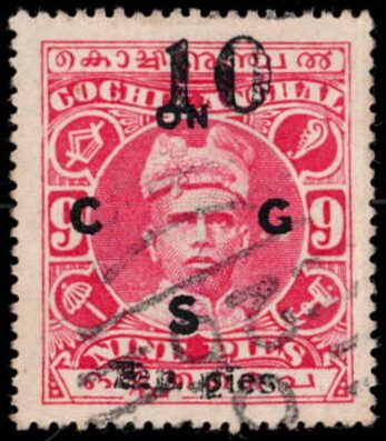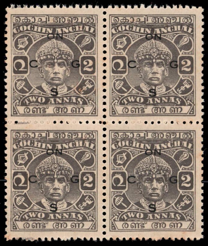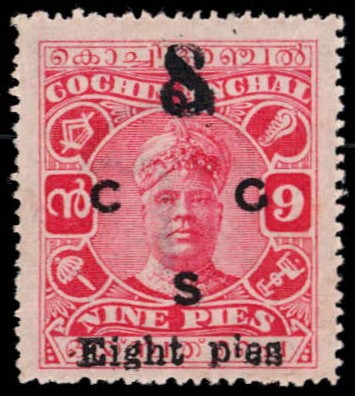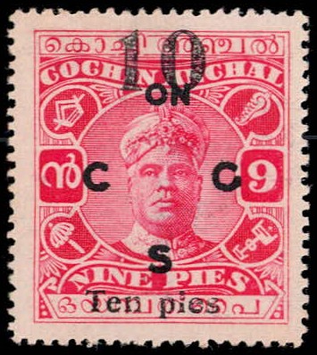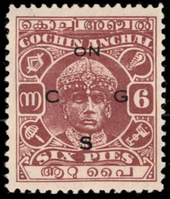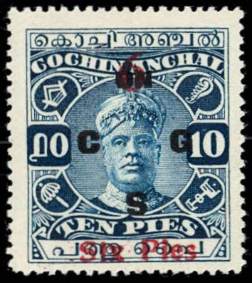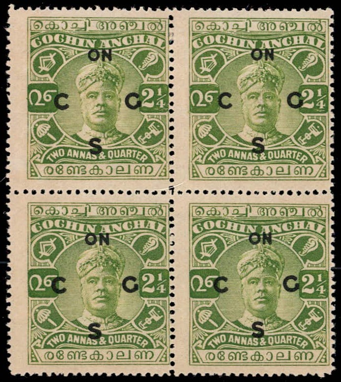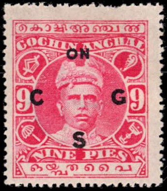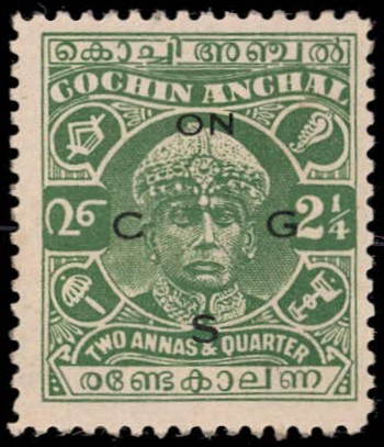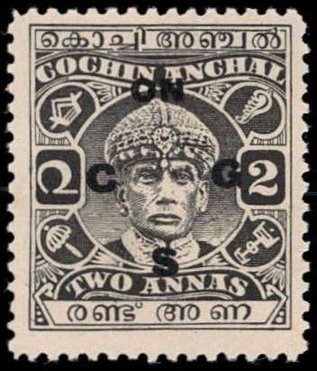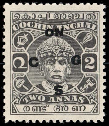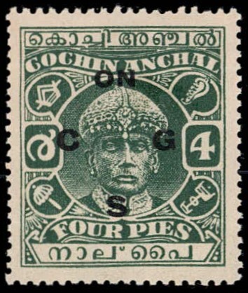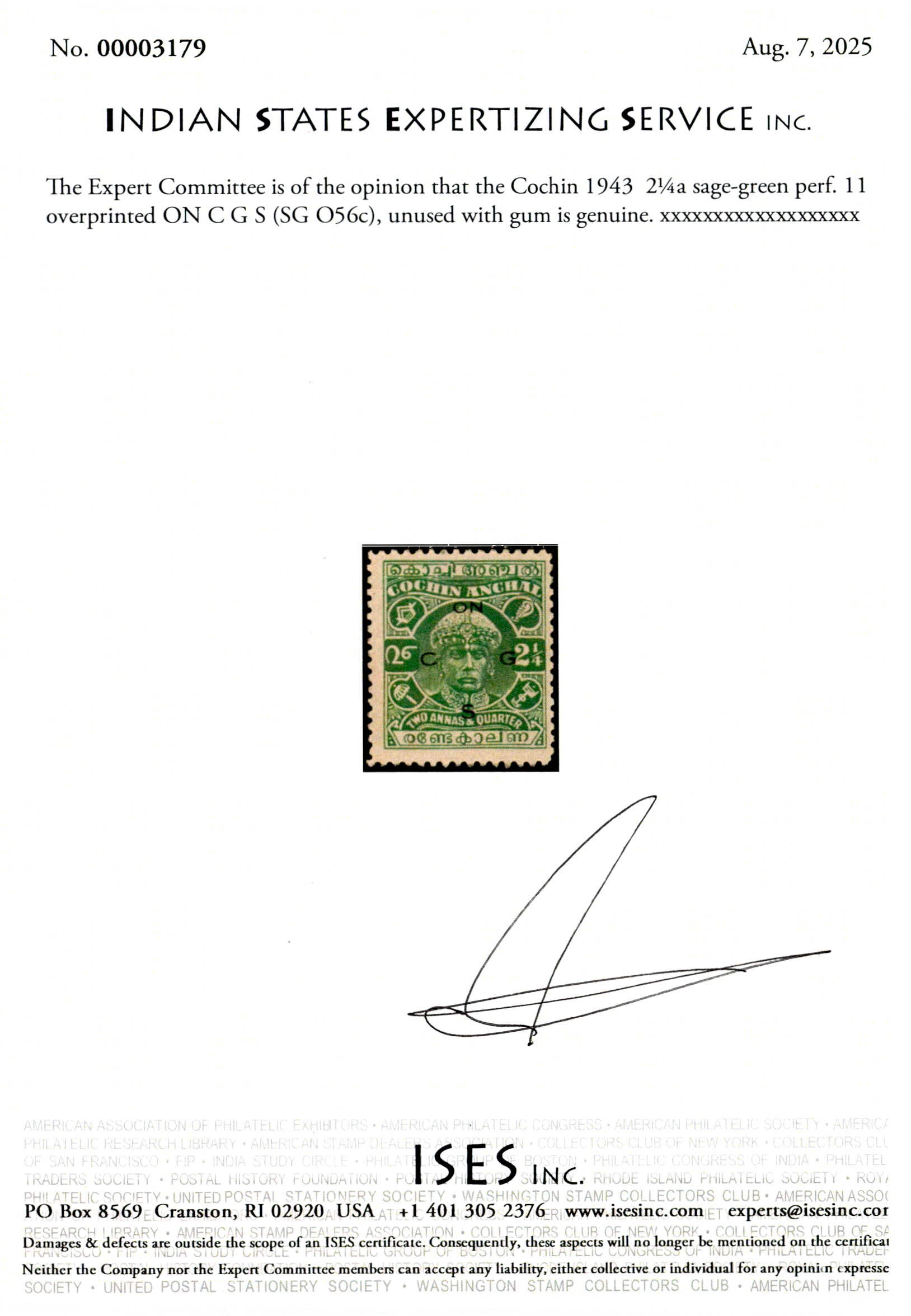 sage-green perf. 11 overprinted ON C G S. A great rarity of Cochin in MNH condition. 2025 ISES certificate (Image) (imagea)