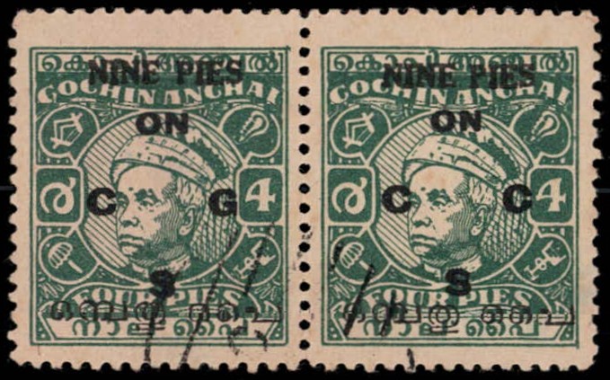 overprinted ON C G S, horizontal pair, left stamp with "C" for "G" error. (Image)