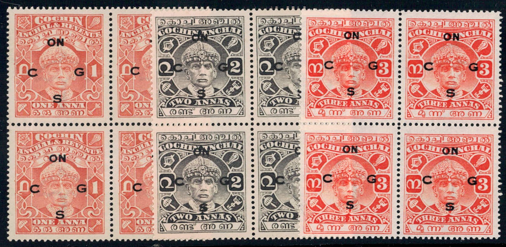 3a complete set of 3 overprinted ON C G S in blocks of four (Image)