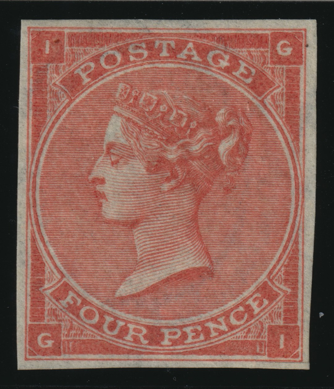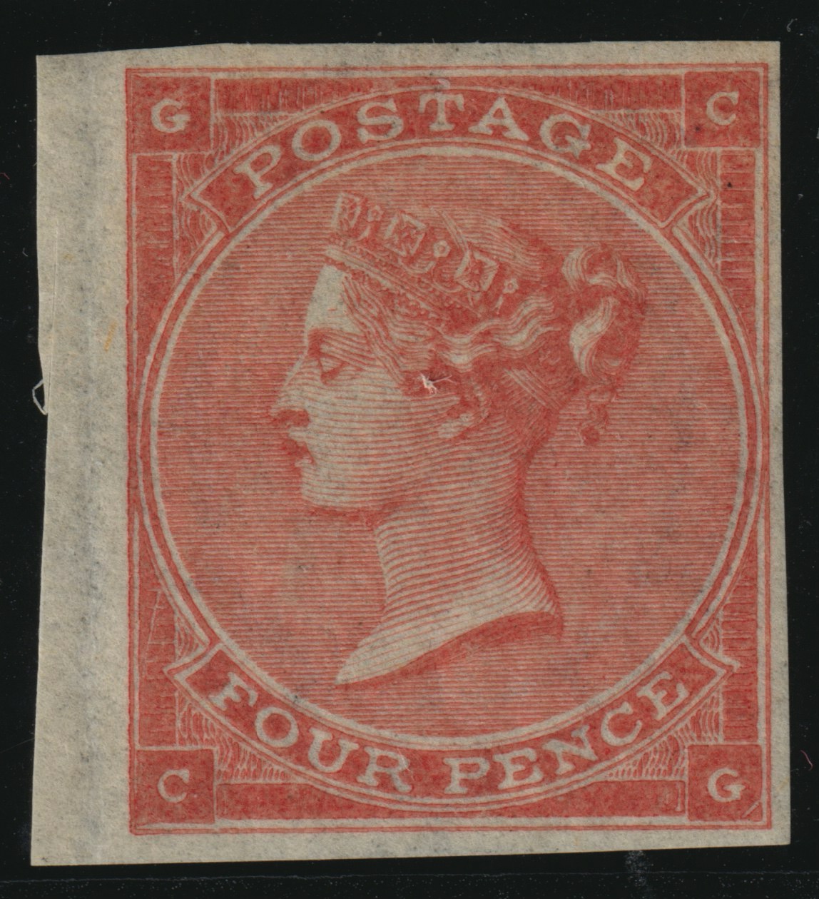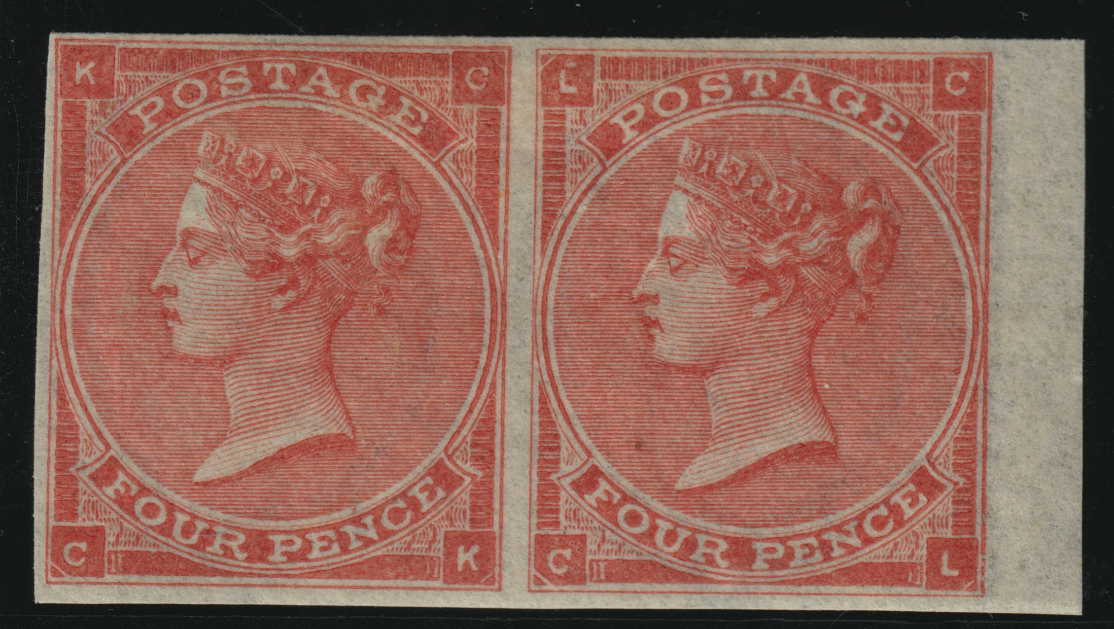 Great Britain 1863 4d pale red Plate 4 imperforate, SG82a.
