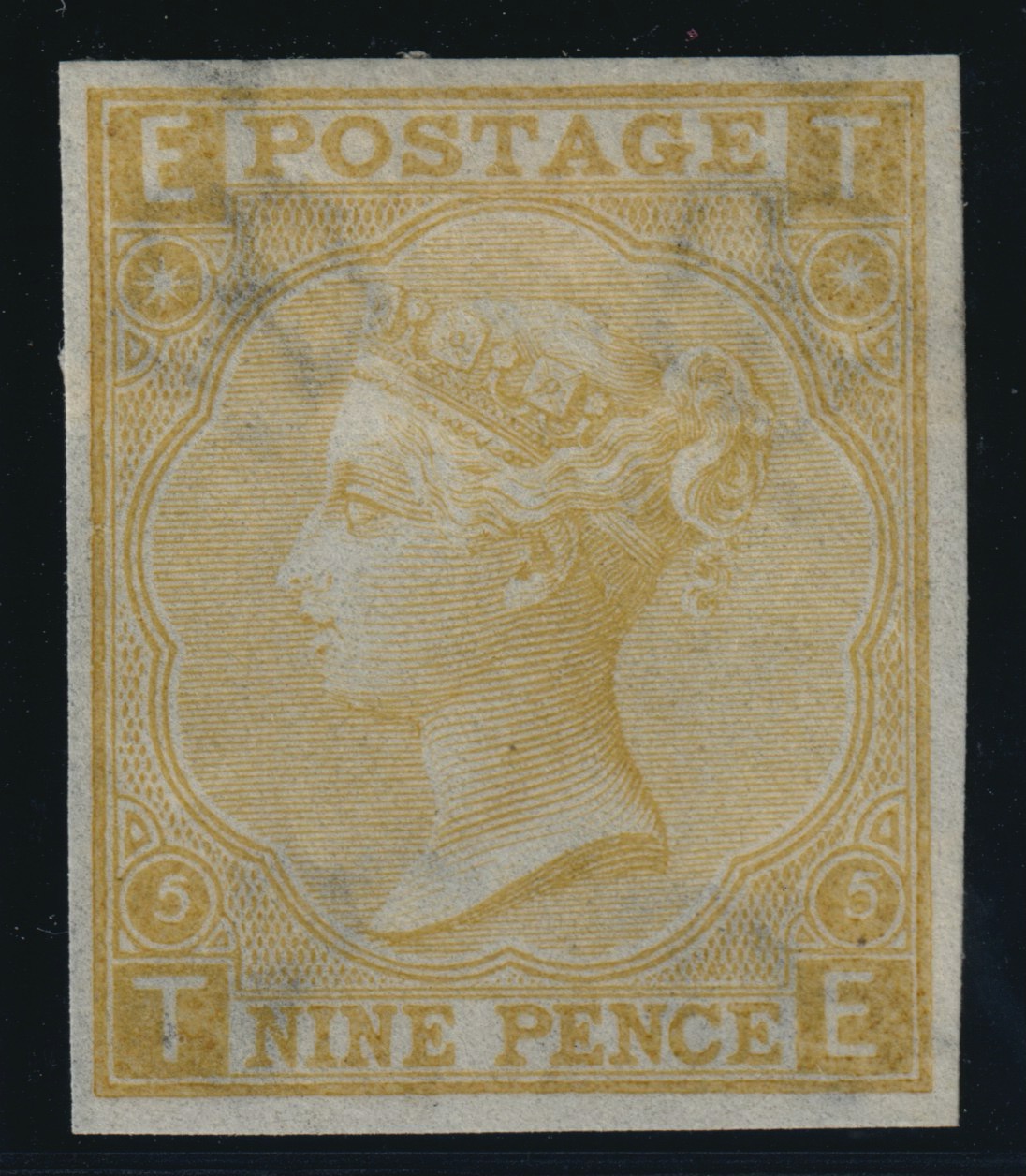 Great Britain 1865 9d straw Plate 5 (Watermark Emblems) imprimatur, SG98var.