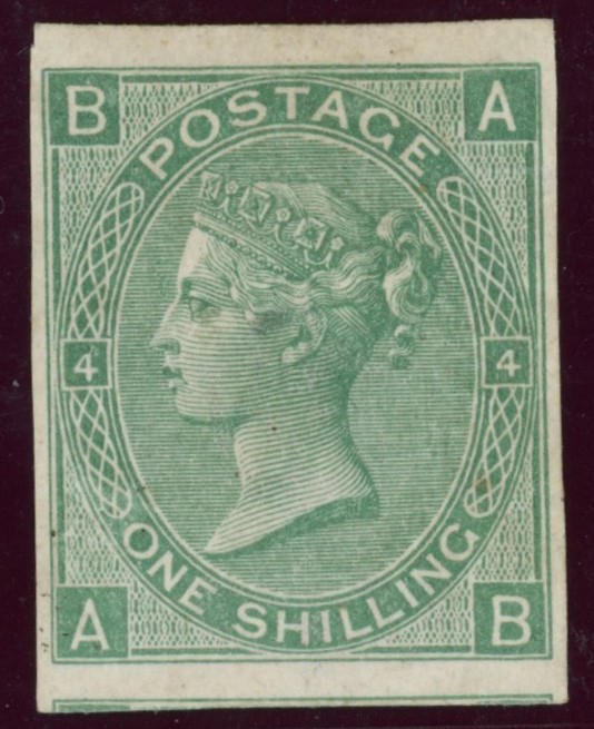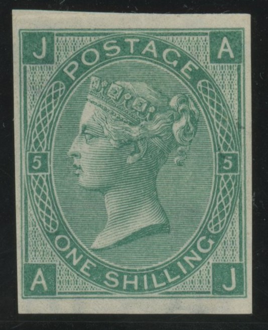 Great Britain 1865 1s green Plate 5 (Watermark Emblems) imprimatur, SG101var.