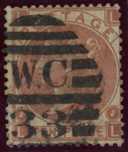 A very fine used example of this rare "abnormal" issue lettered 'LL', neatly cancelled by a London WC/33 numeral leaving both plate numbers clearly visible.