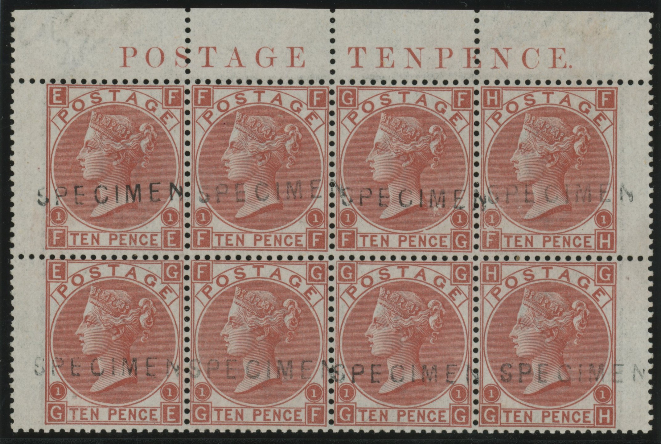 Great Britain 1867 10d red brown Plate 1 Specimen, SG112s.