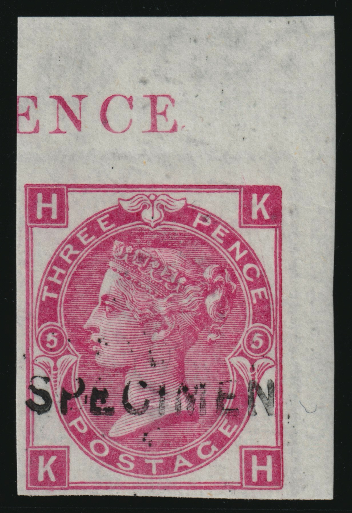 Great Britain 1868 3d rose Plate 5 Specimen, SG103var.