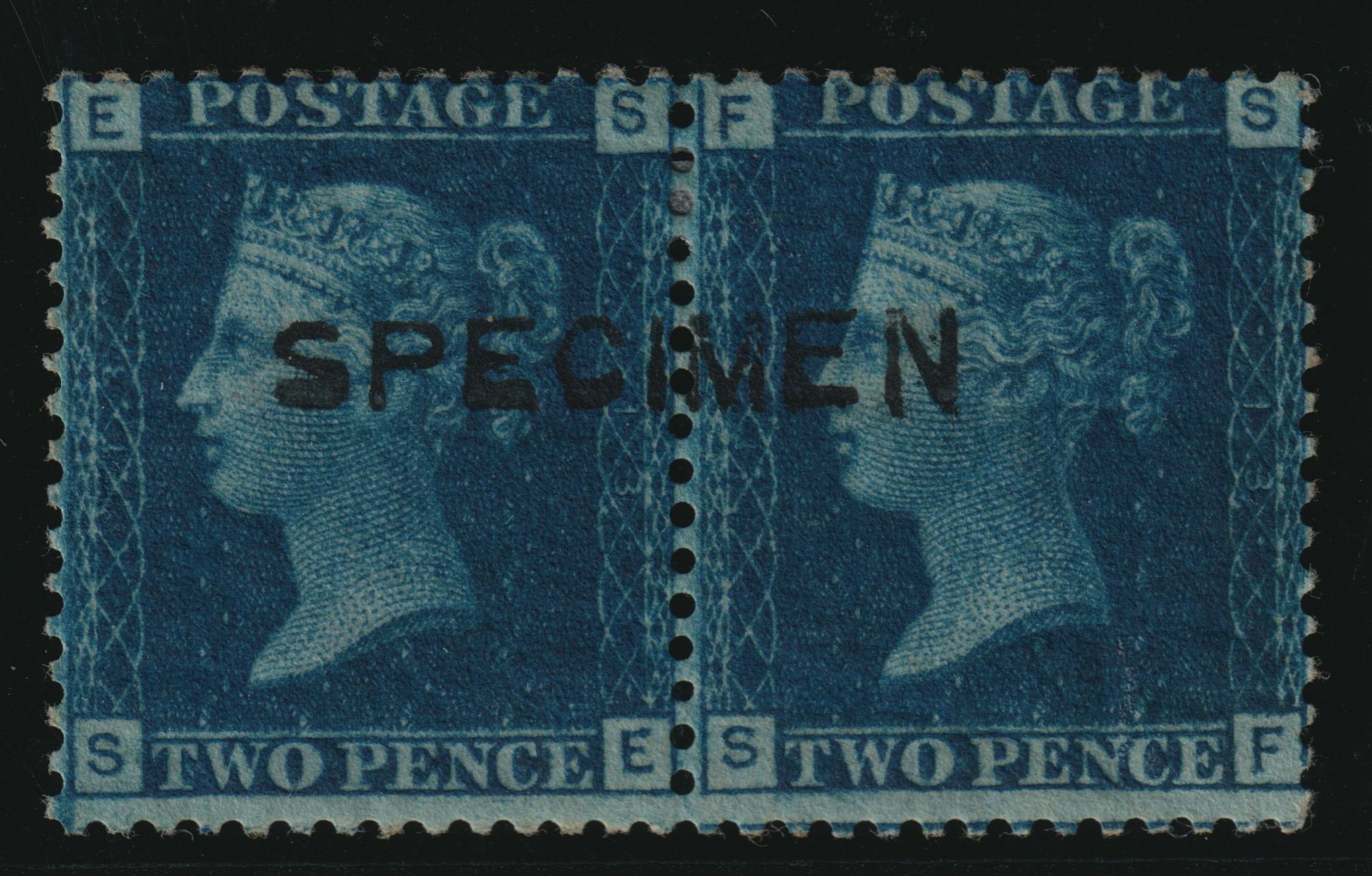 A magnificent unused with original gum horizontal pair lettered 'SE-SF', overprinted "SPECIMEN" (21 5 x 3mm) over both stamps.