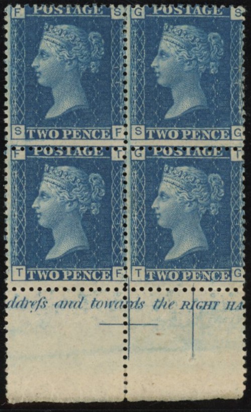 Very fine and fresh unused, with original gum, bottom marginal block of four showing part sheet inscription lettered 'SF-TG' ('TF-TG' are unmounted mint).