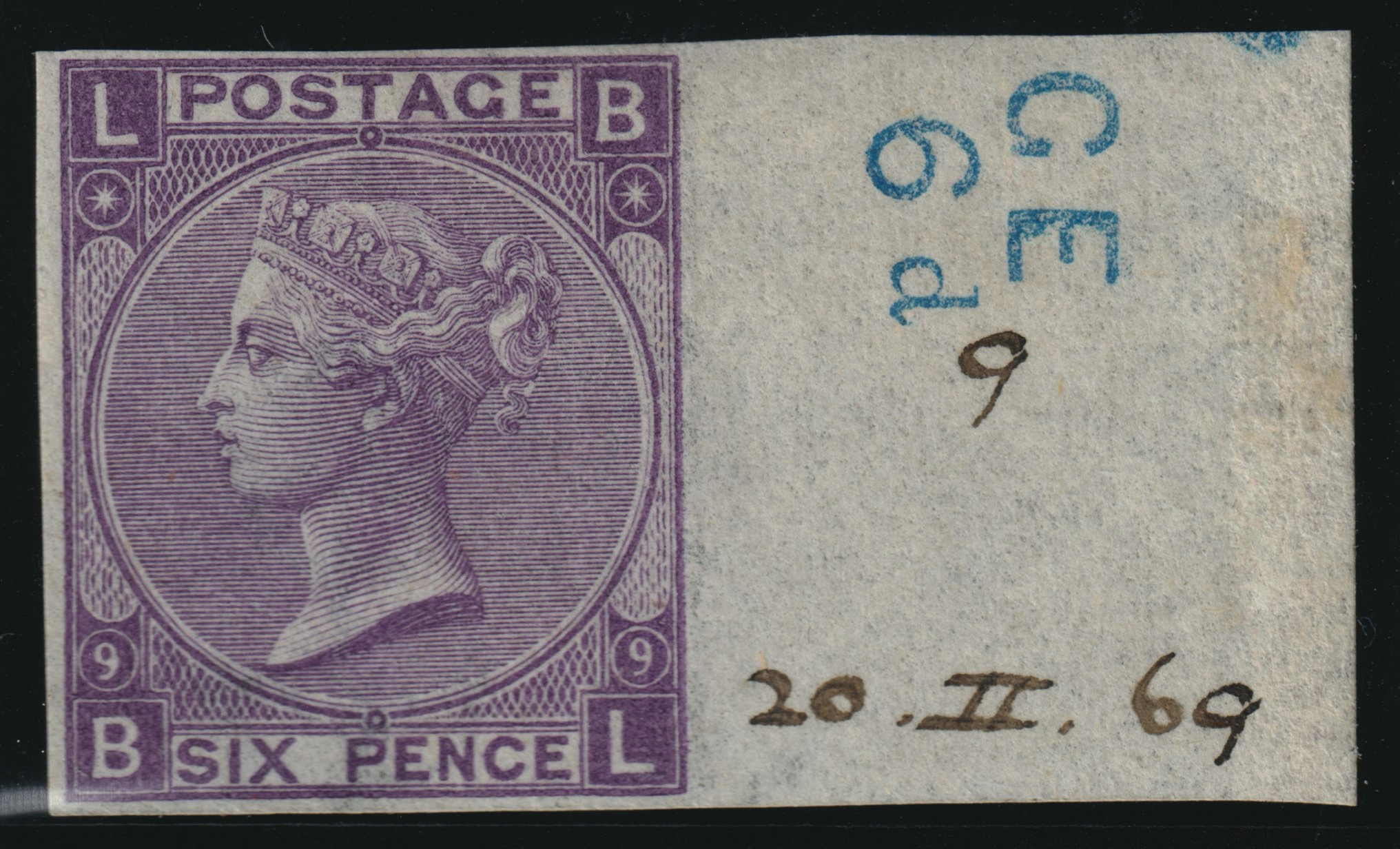 Great Britain 1869 6d mauve Plate 9 imprimatur, SG109var.