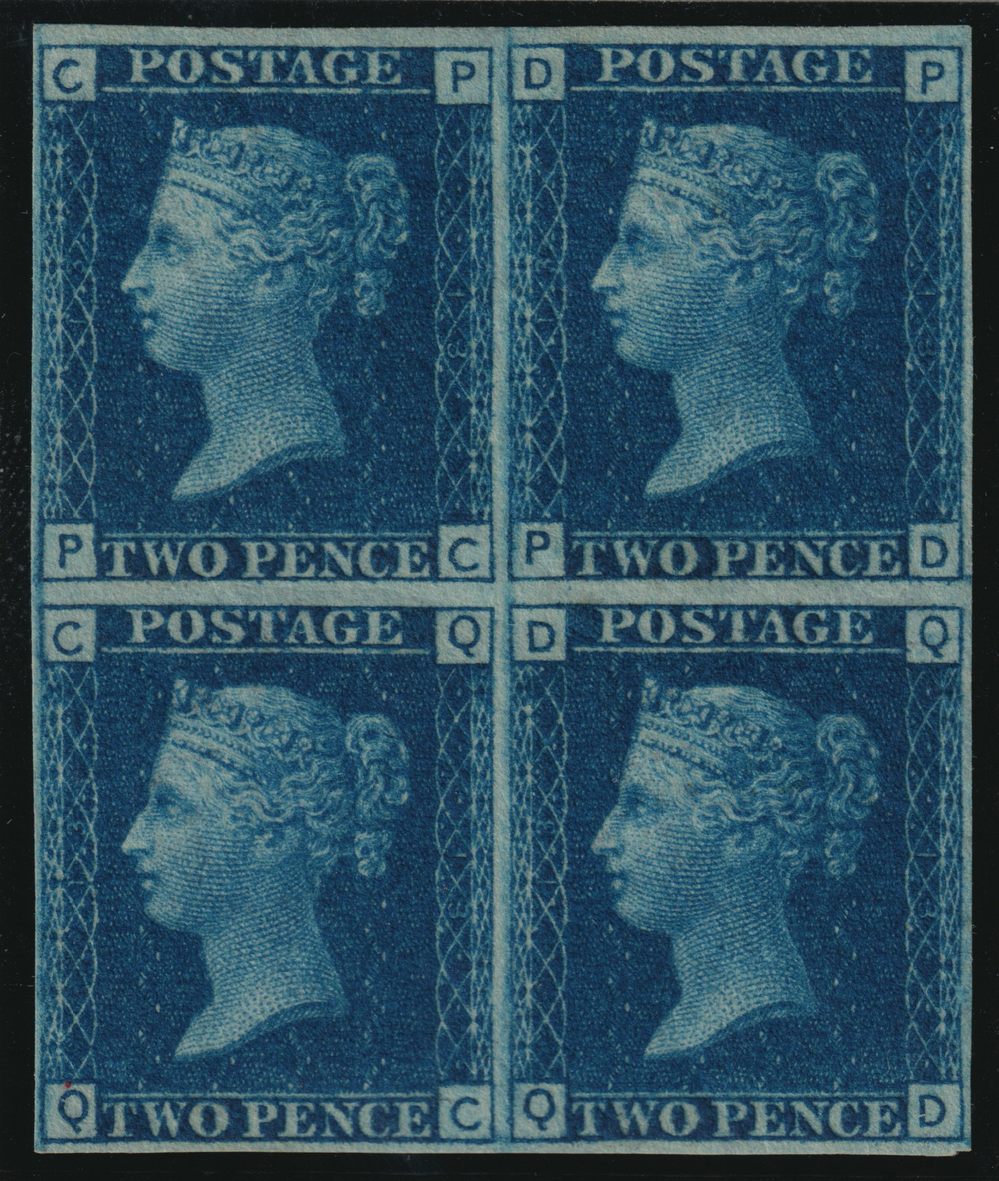 A superb unused with original gum four-margin block of four, lettered 'PC–QD', with two stamps unmounted mint.