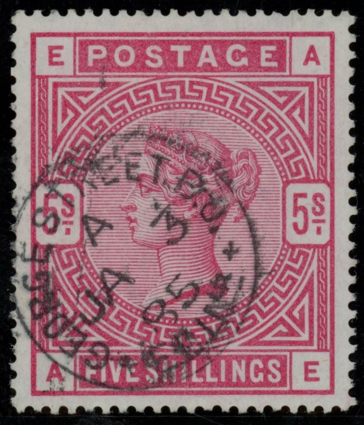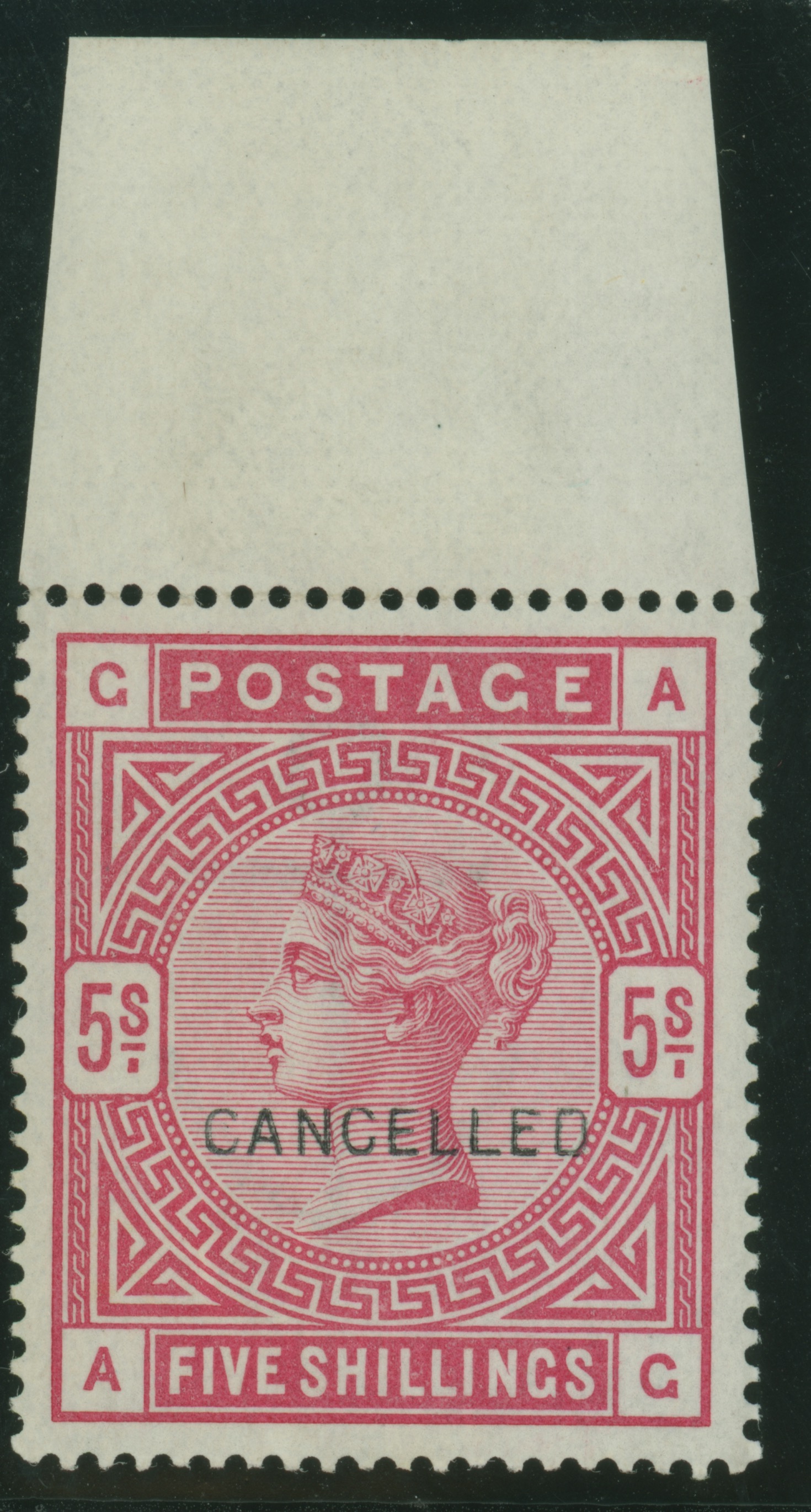 Great Britain 1884 5s rose (blued paper, Perforations 12) Specimens, SG176s.