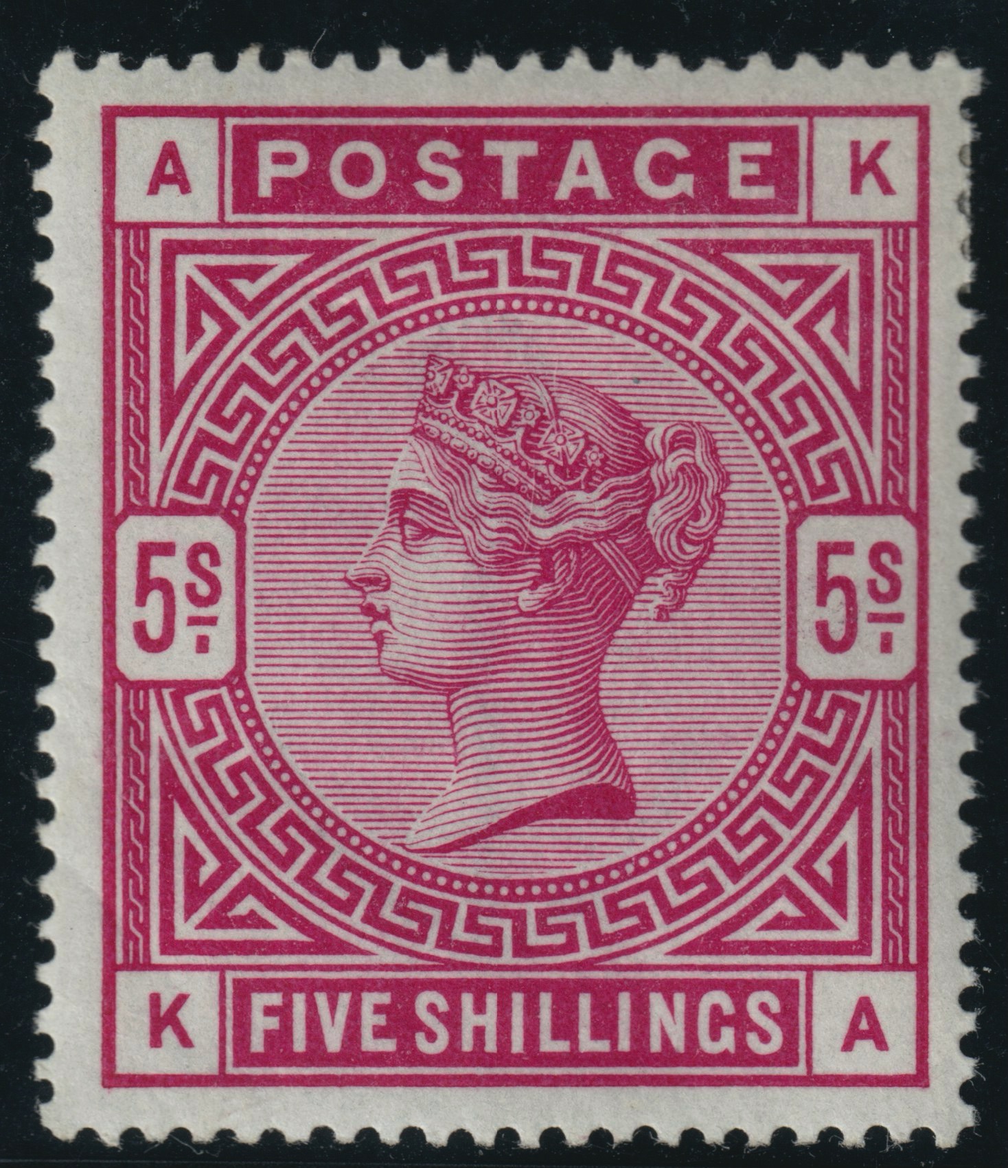 The 5 shilling rose is one of the most instantly recognisable Queen Victorian surface printed stamps and is notoriously difficult to find on blued paper. The later issue on white paper is much easier to find and of significantly less value.