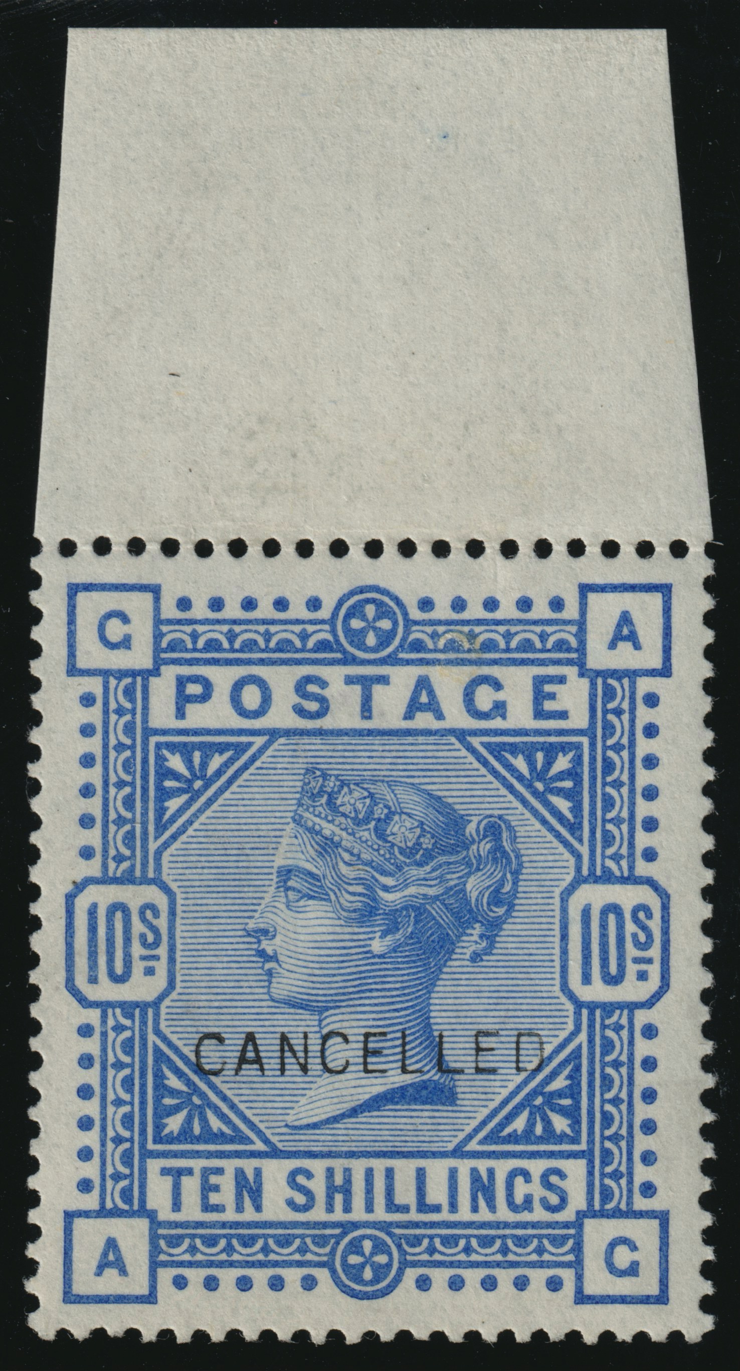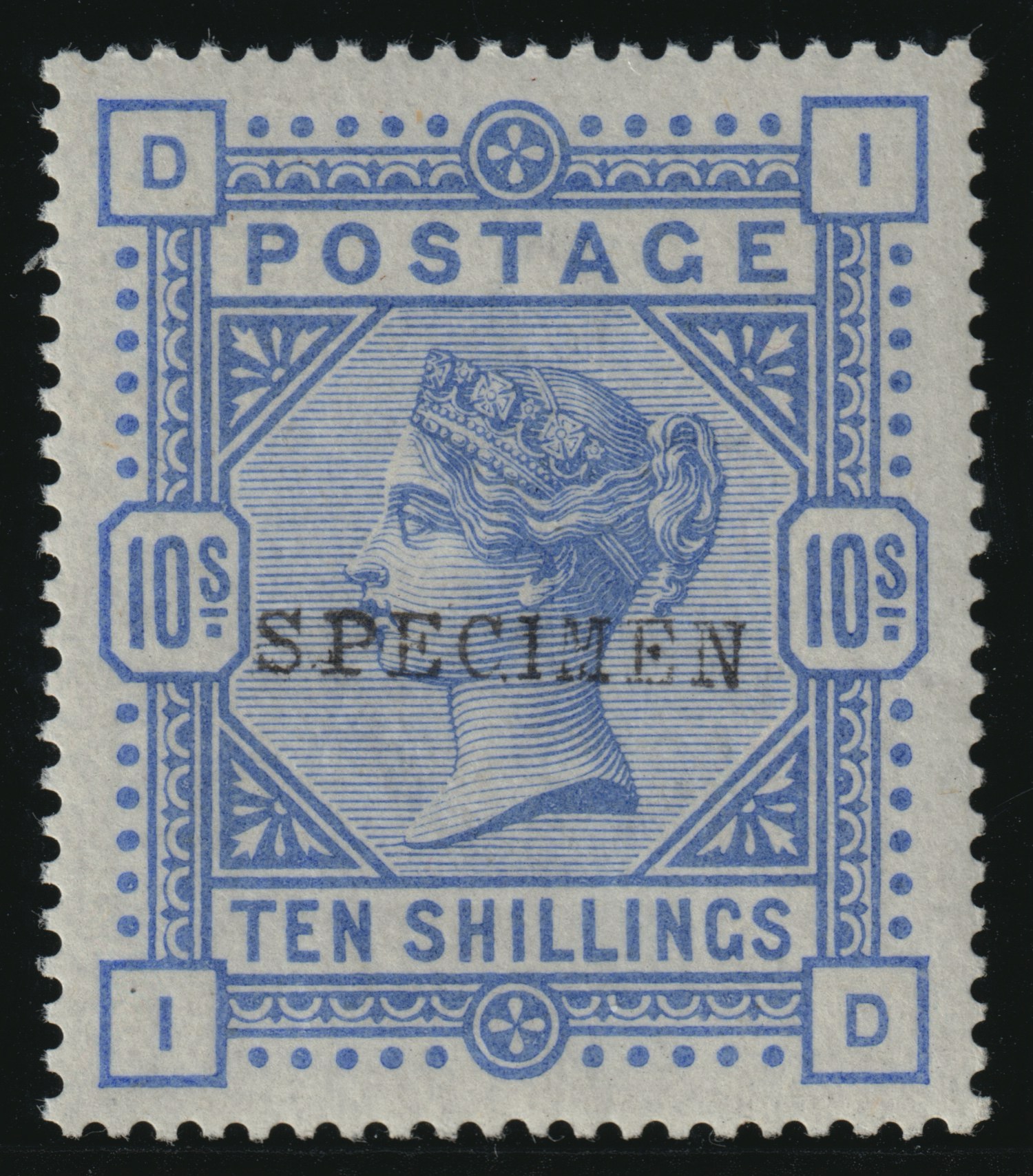 Great Britain 1884 10s cobalt (white paper) Specimen, SG182s.