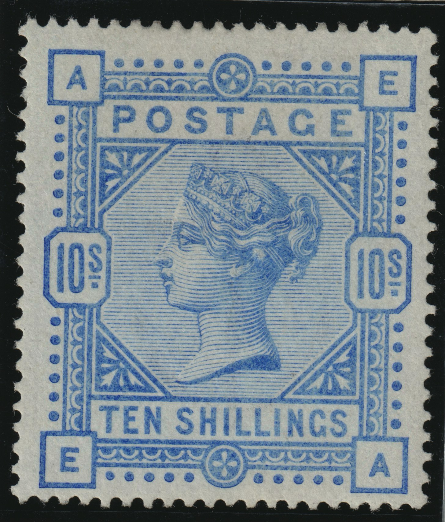 A superb example of the 1884 10 shillings ultramarine on white paper, lettered 'EA', in exceptional unused with original gum condition.