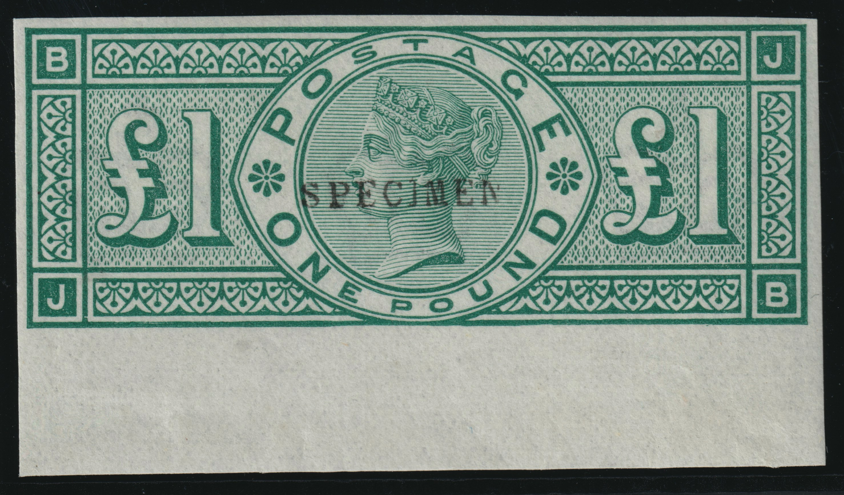 A superb unmounted mint, with full original gum, bottom marginal imperforate example lettered 'JB', overprinted "SPECIMEN" type 9.