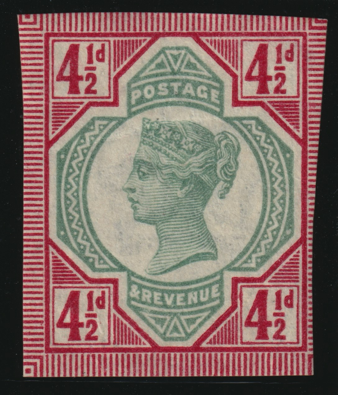 Great Britain 1892 4½d green & deep bright carmine "Jubilee", SG206a.