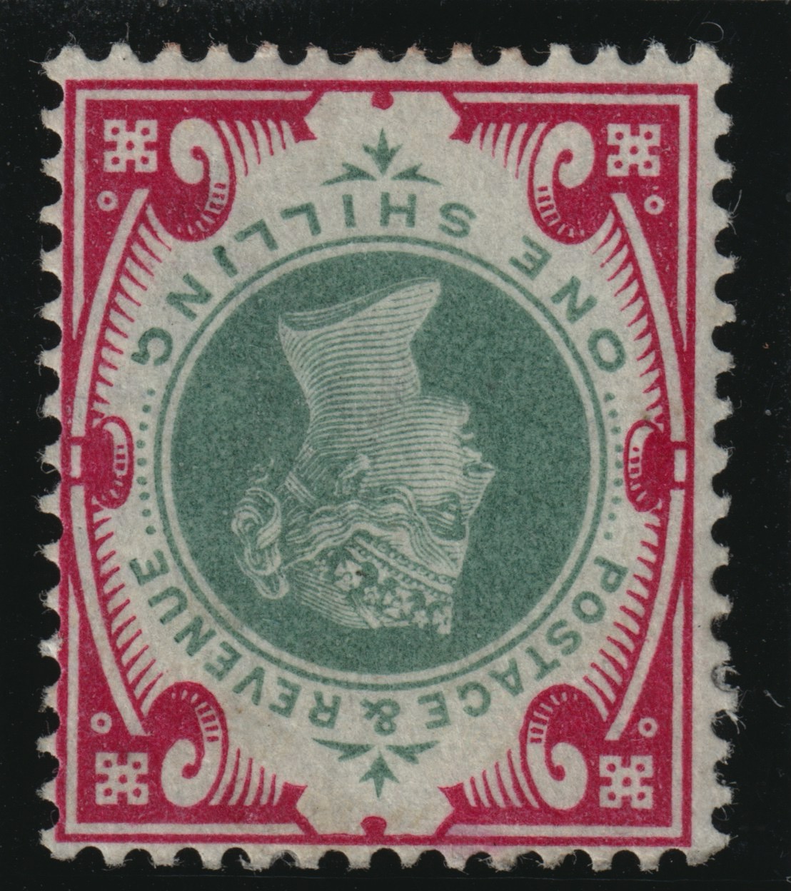 Rich colour with deep green centre and vivid carmine frame. Sharp perforations and strong impression. A fine and fresh mint example.