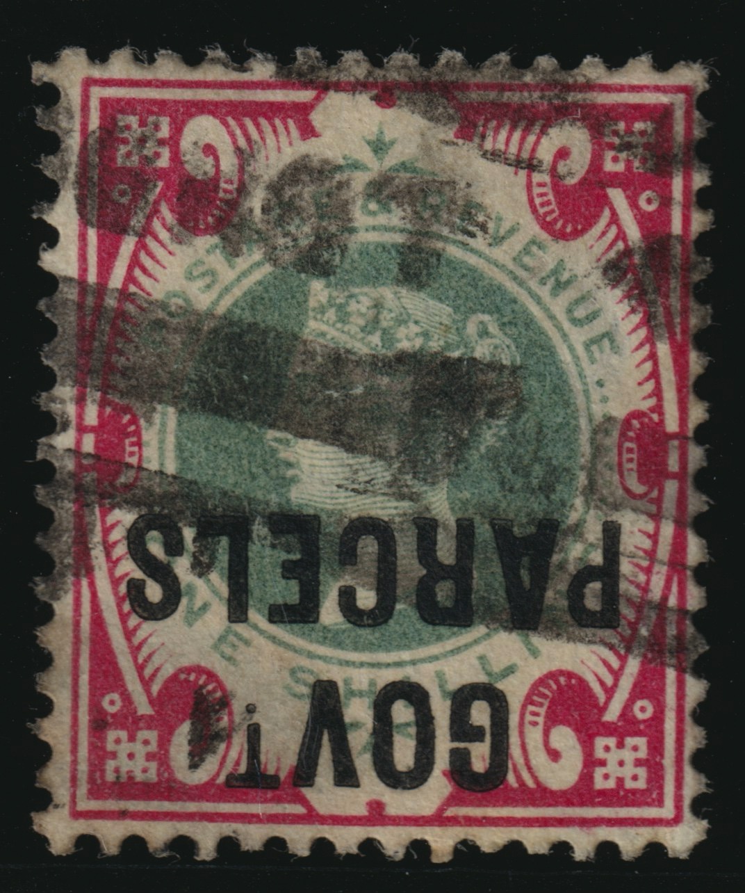 Great Britain 1900 1s green & carmine ("Govt Parcels" inverted), Official, SGO72a.