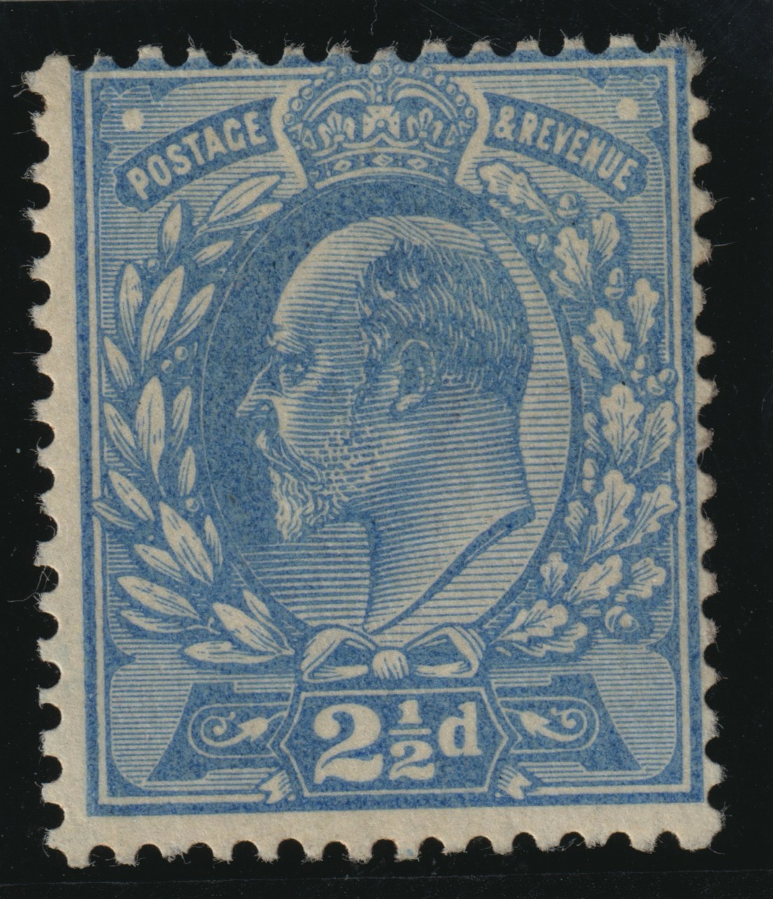 A very fine unused with original gum example printed by De La Rue in pale blue on Crown watermarked paper. Prepared as part of the colour trial process for the King Edward VII issue, showing the precision and craftsmanship of De La Rue’s work at
