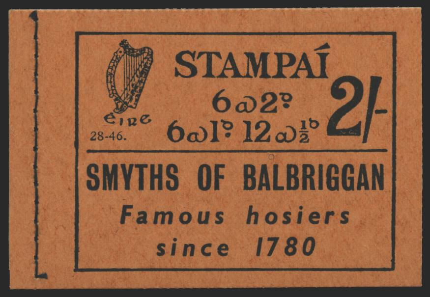 Ireland 1946 2s booklet, black on buff cover, edition '28-46', containing 12 x ½d, 6 x 1d, 6 x 2d in panes of 6 with watermark inverted, SGSB6.