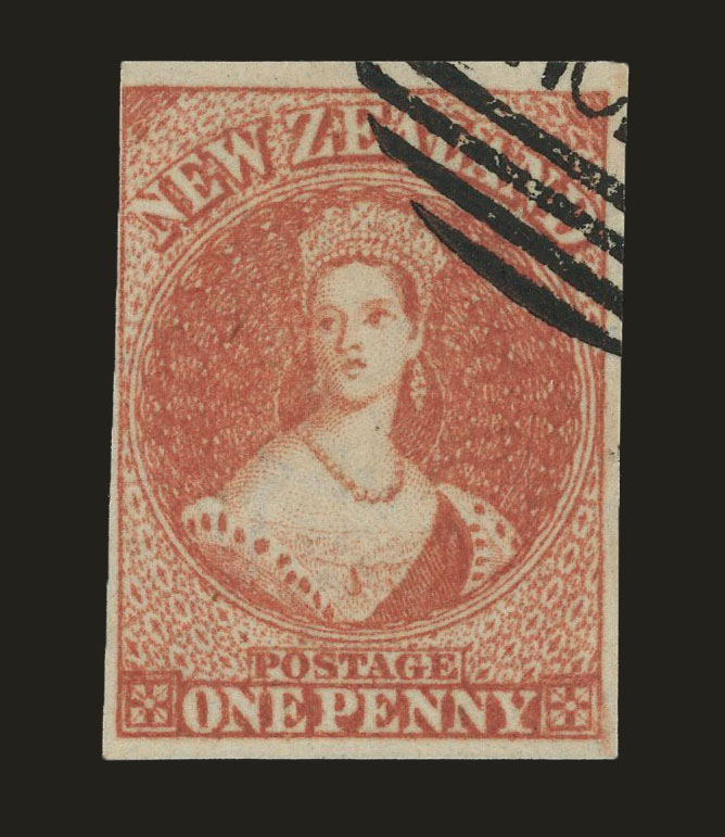 An exceptional used and dated example of this key rarity in rose-red colour shade and with the watermark upright. A few slightly shortish perforations, but is the best quality example we have ever handled.