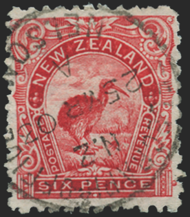 New Zealand 1902-07 6d rose-red "Kiwi", watermark 43 UPRIGHT, perforations 11, attractively cancelled by Telegraph Office Nelson circular date stamp dated "25 MR 03", SG312ab.