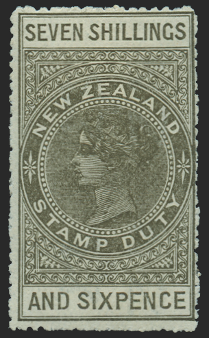 New Zealand 1906 7s6d bronze-grey Postal Fiscal, unsurfaced "Cowan" paper, watermark 43 sideways, perforations 14, SGF84.