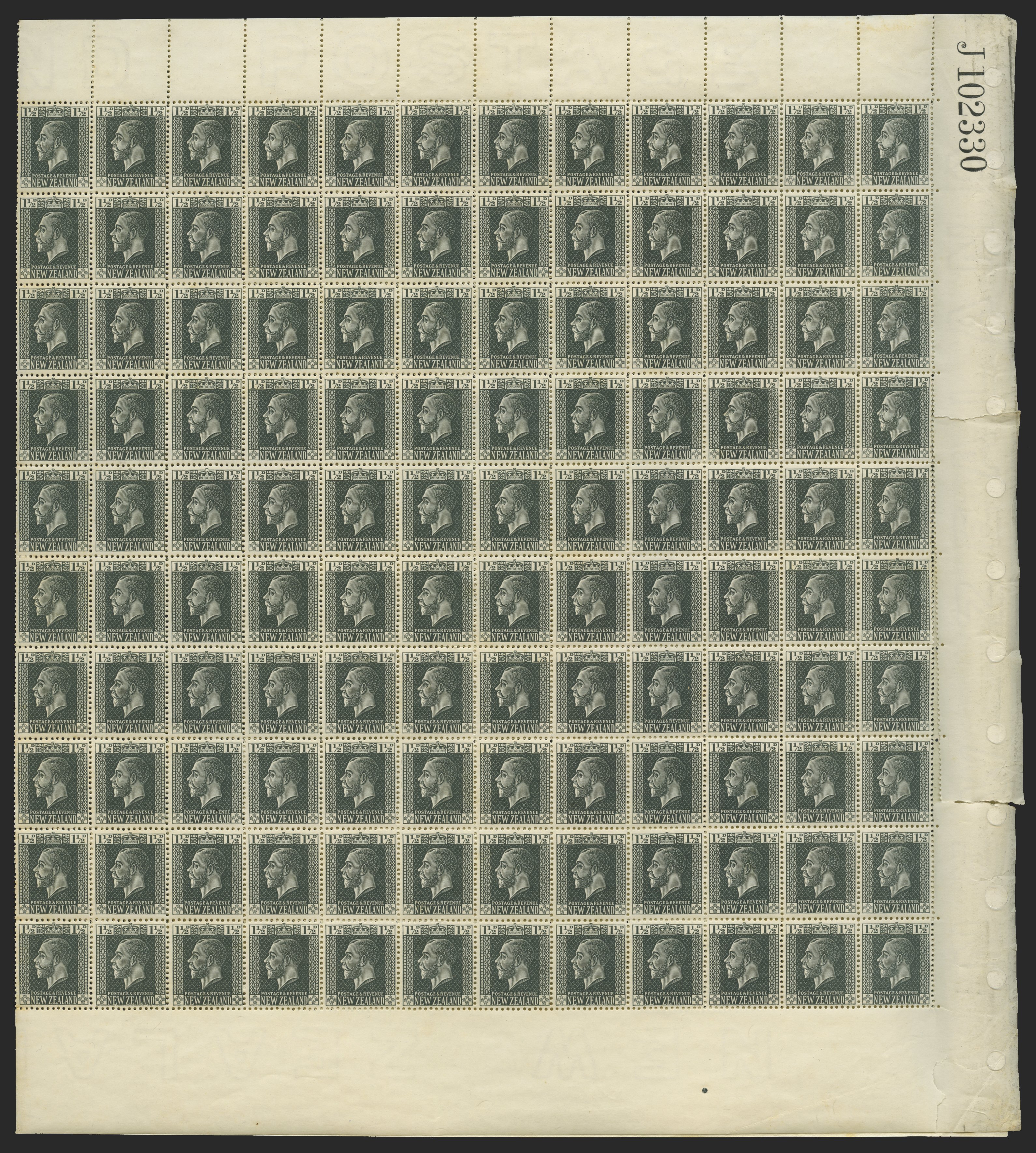 New Zealand 1915-33 1½d slate, watermark 43, complete folded sheet of 240 (24x10) with sheet number 'J102330', SG437.