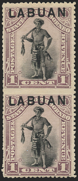 North Borneo Labuan 1894-96 1c grey-mauve, perforations 13½-14, vertical pair error imperforated between, SG62ba.