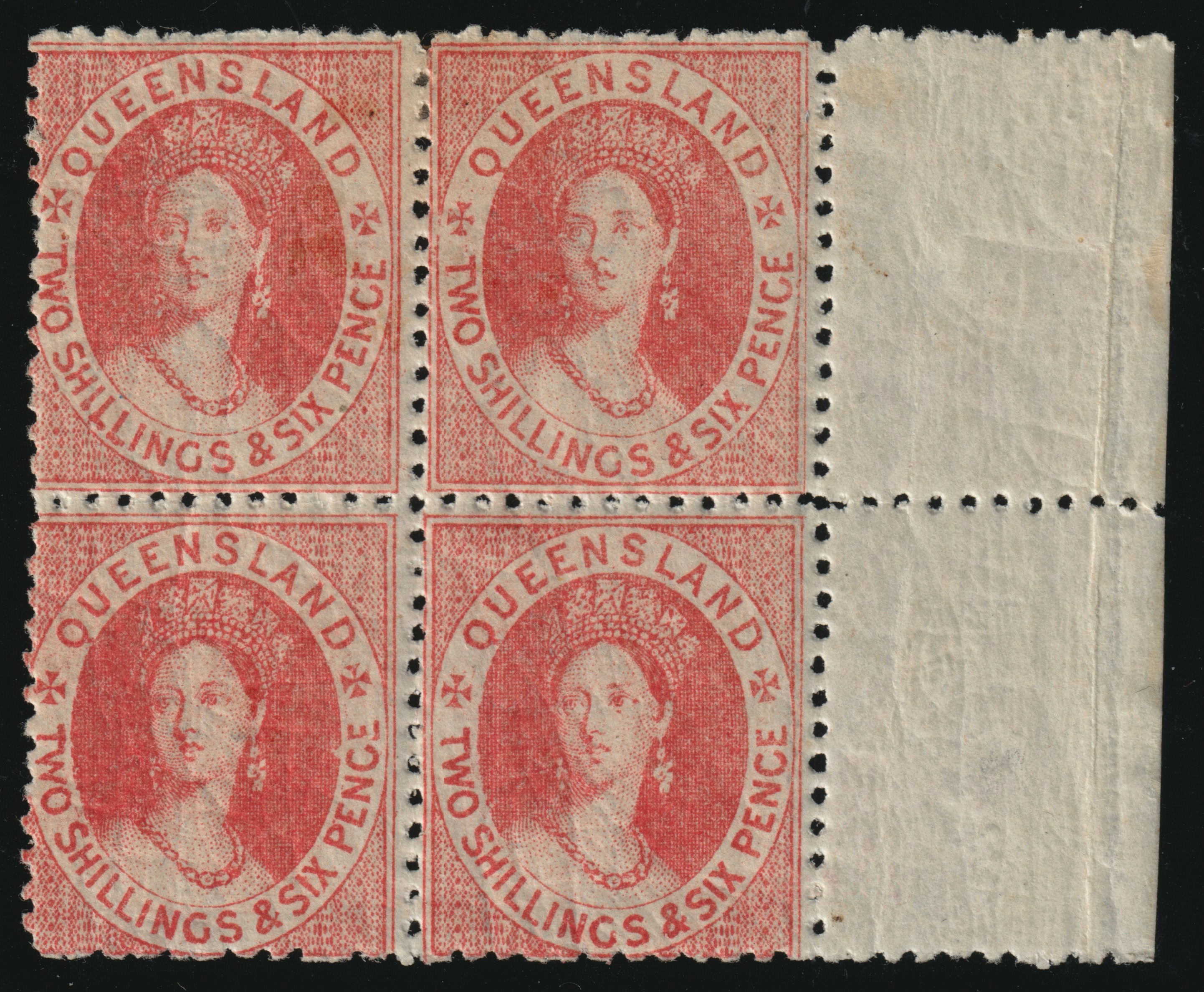 A fine quality mint block with large part original gum. Shows part papermaker's watermark. The gum is rather dry (with slight tones on reverse of left pair) but very attractive fresh appearance with vibrant colour.