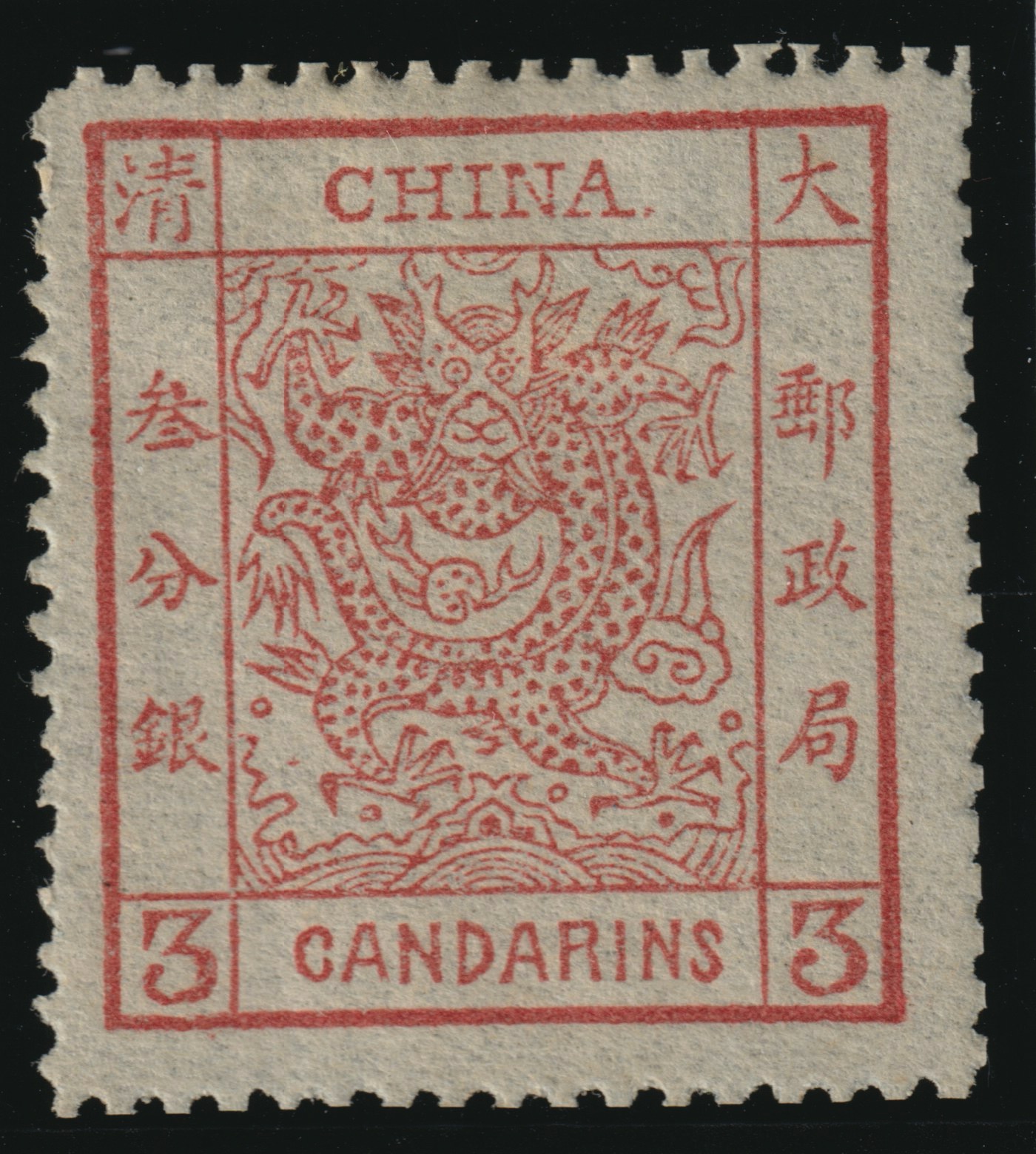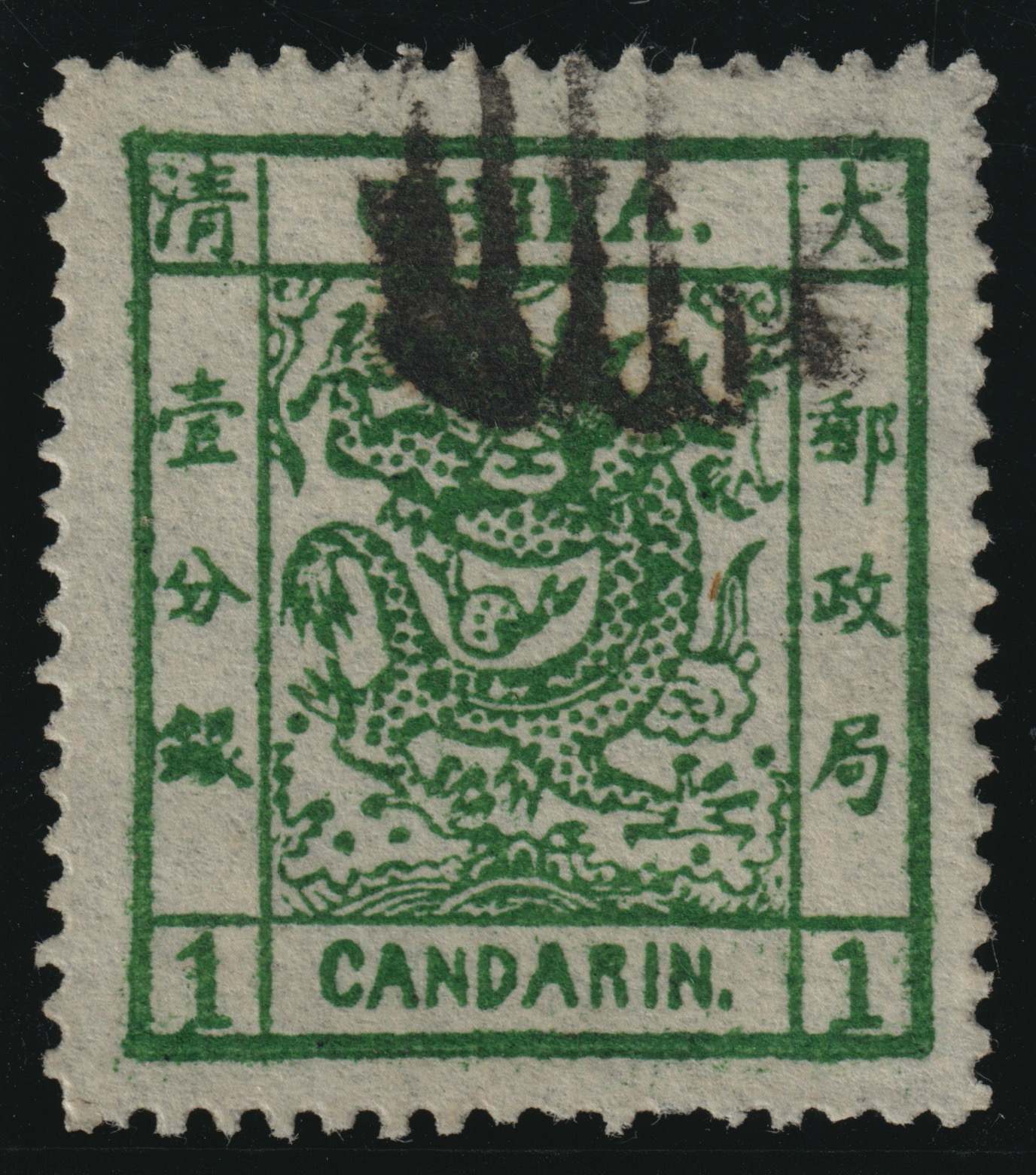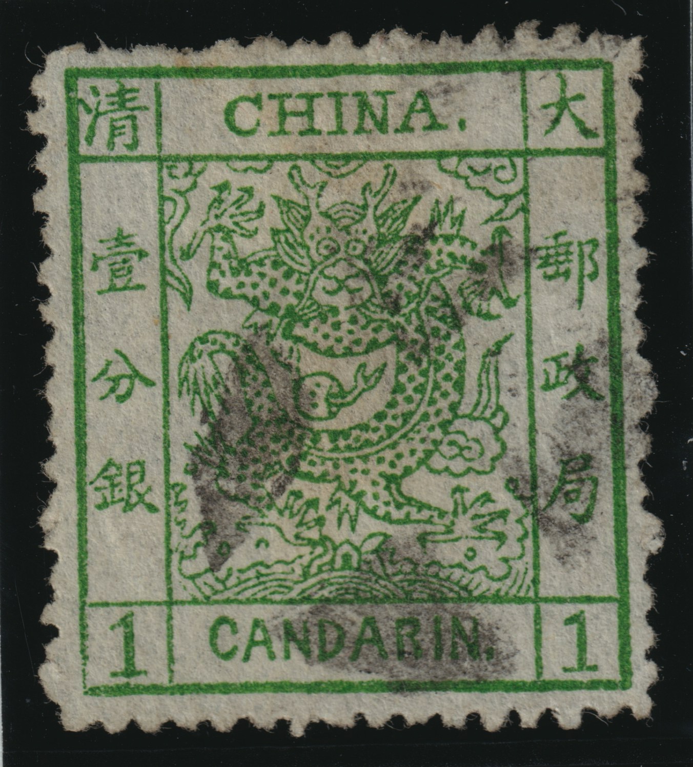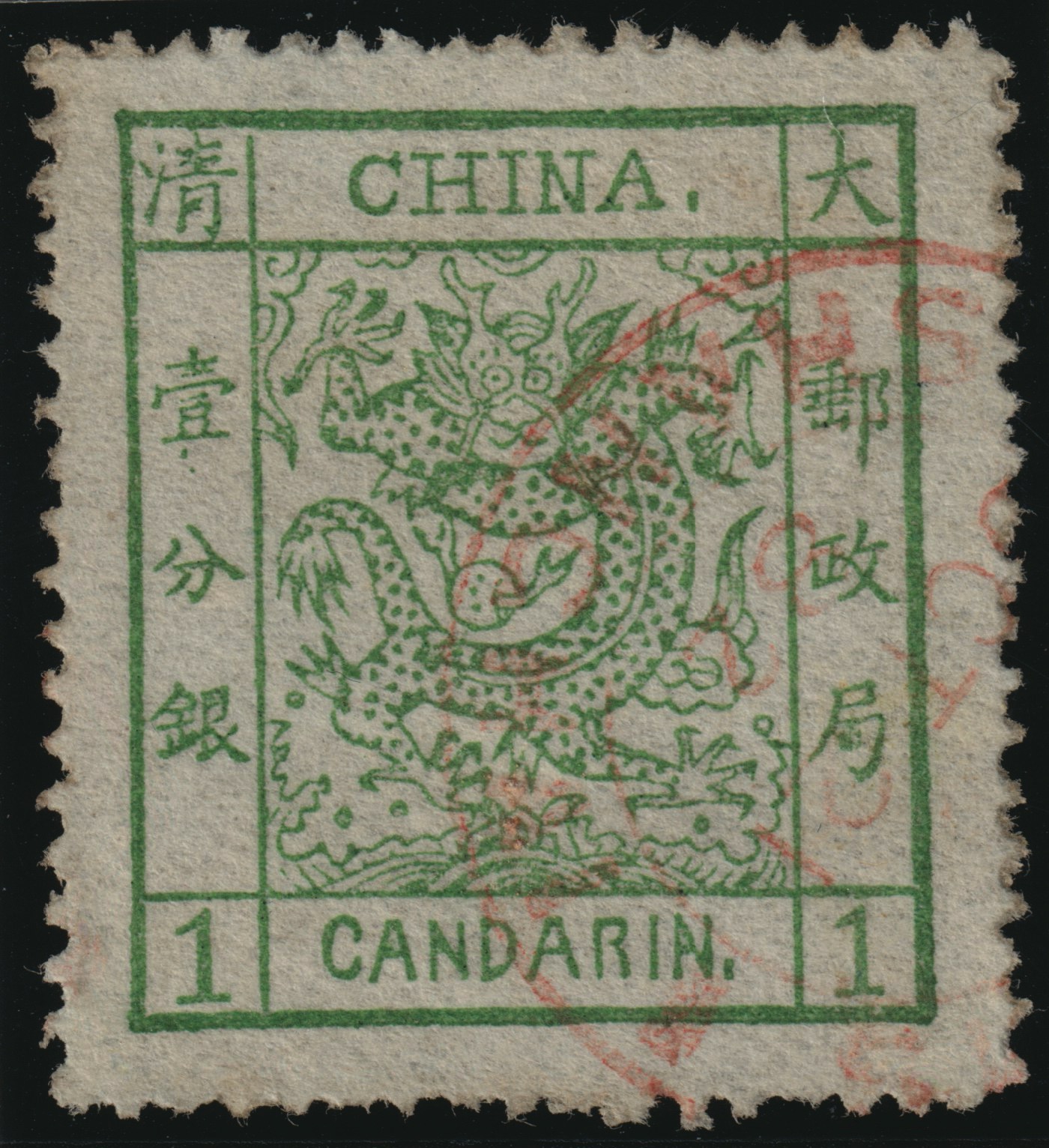 This stamp comes from the first stamp issue of the Chinese Empire in 1878 and holds the same collecting importance in China as the penny black in Great Britain.