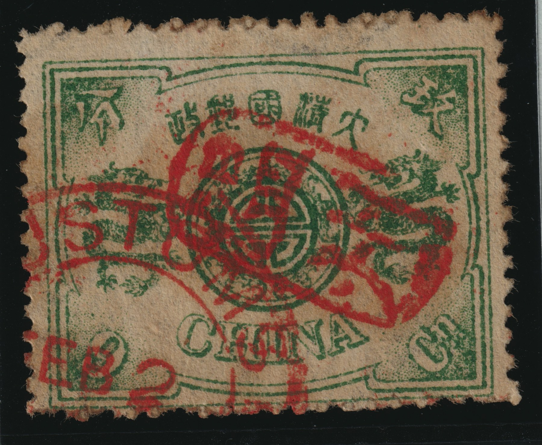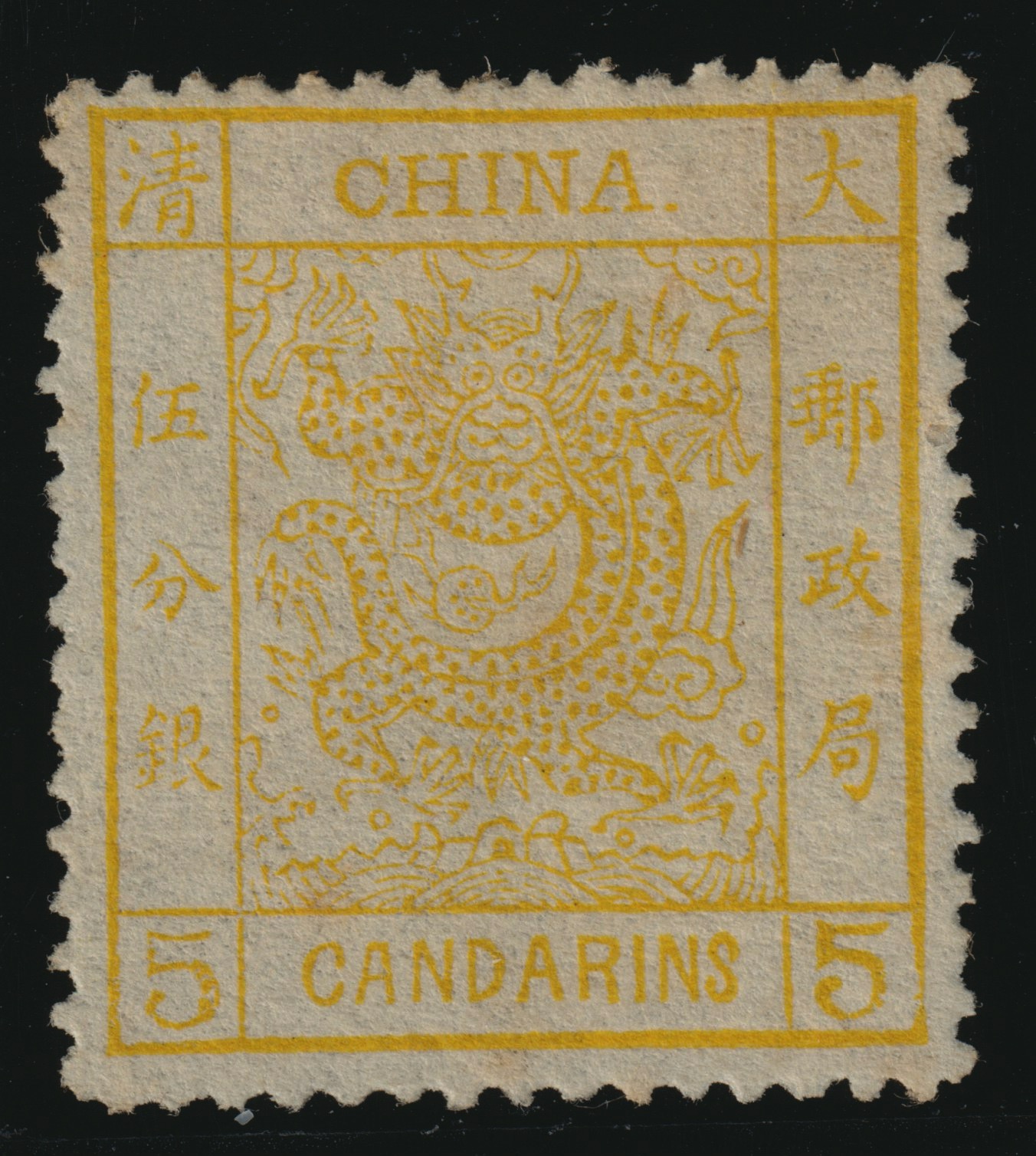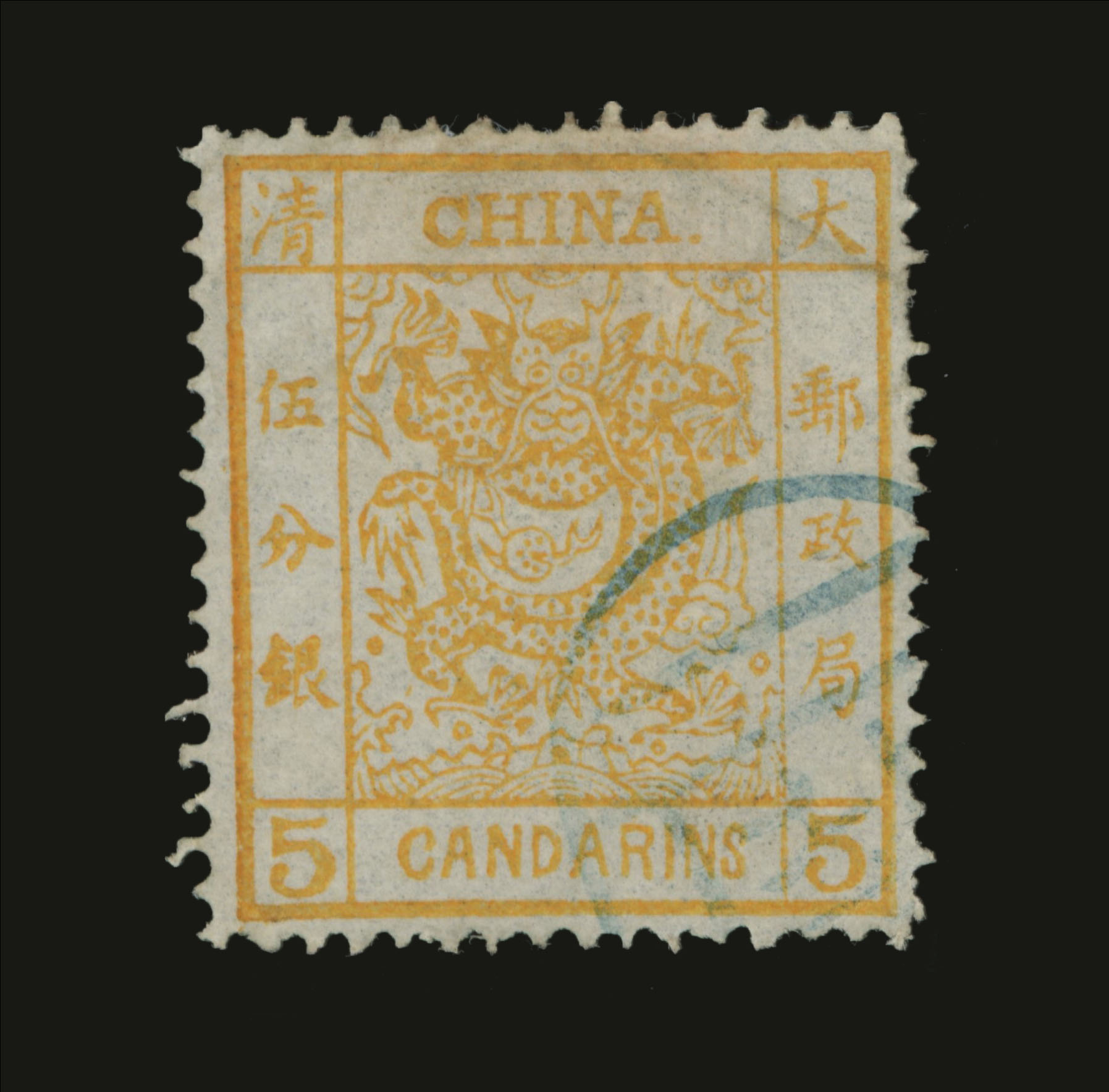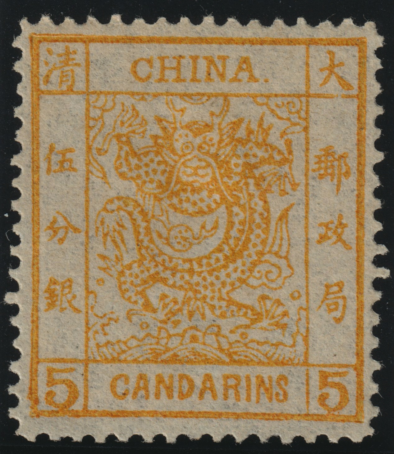This stamp comes from the first stamp issue of the Chinese Empire in 1878 and holds the same collecting importance in China as the penny black in Great Britain.