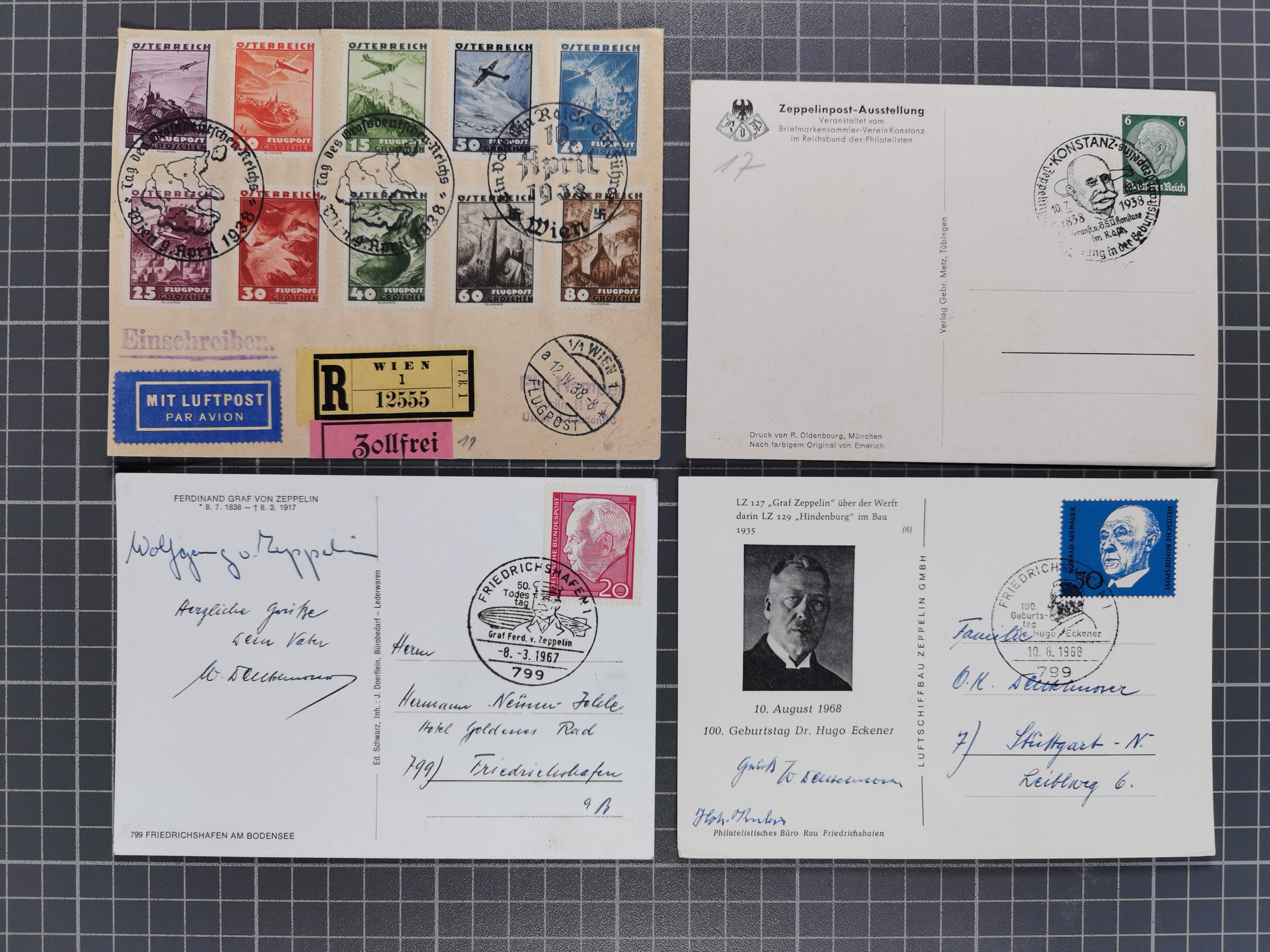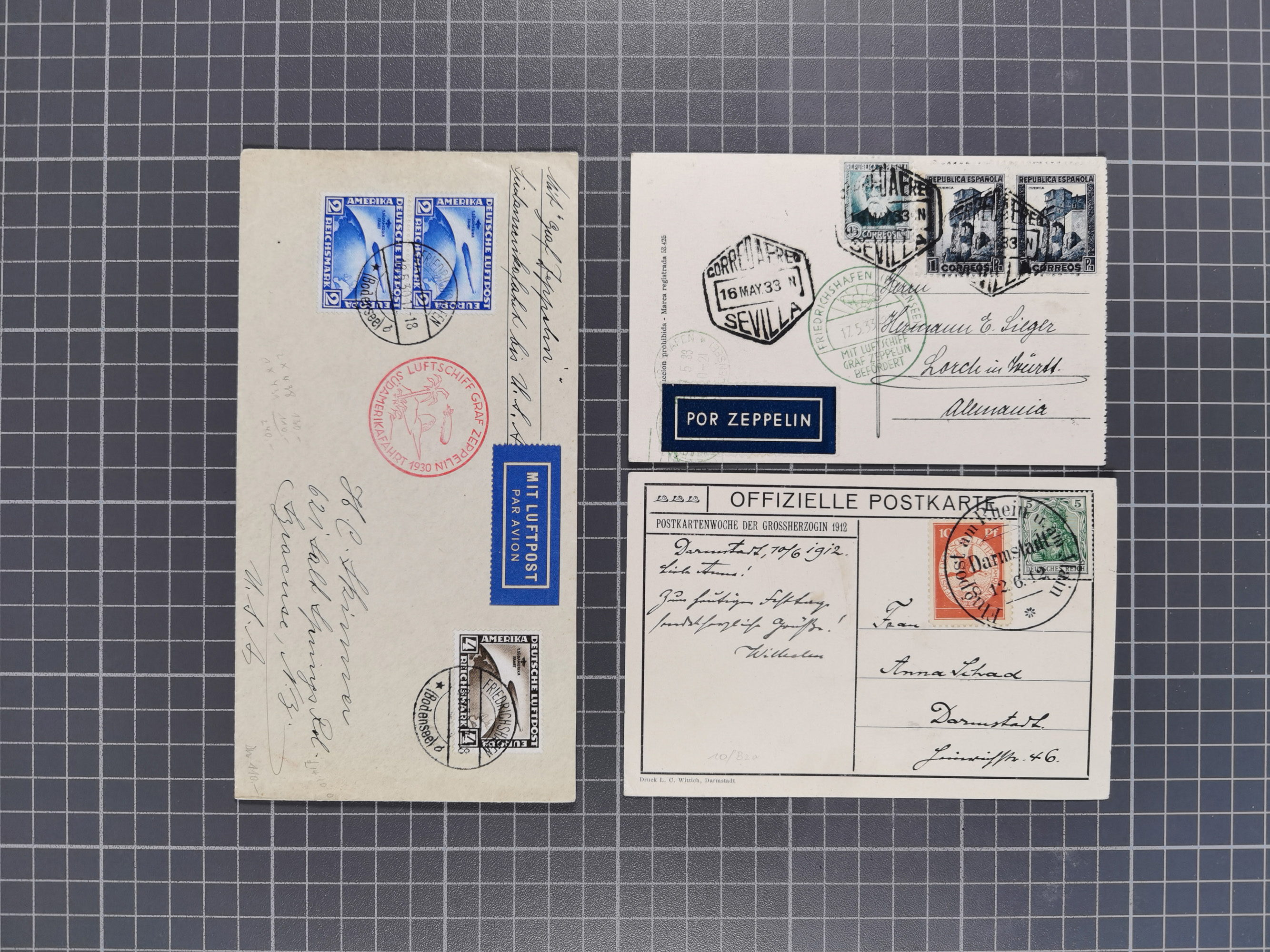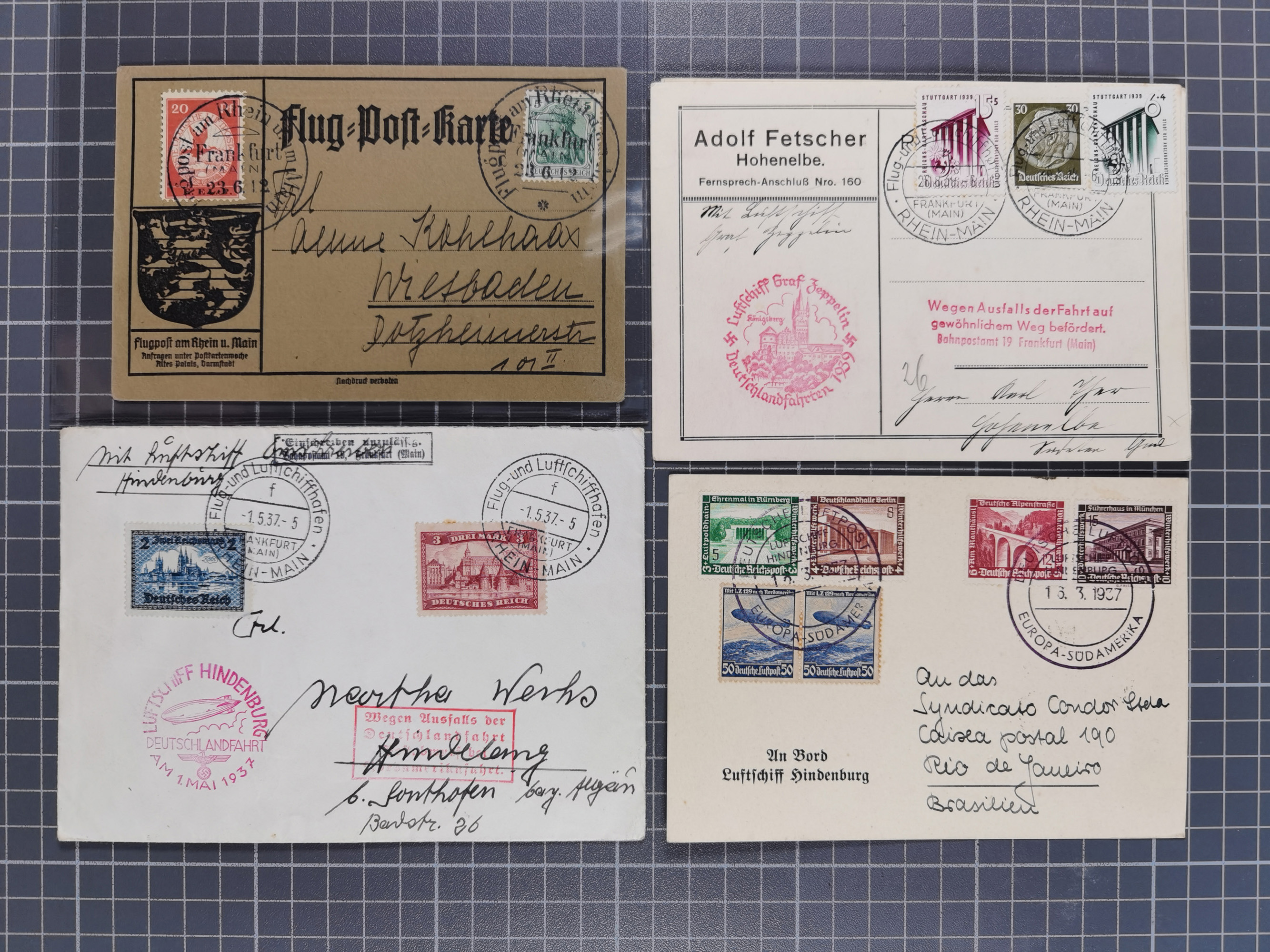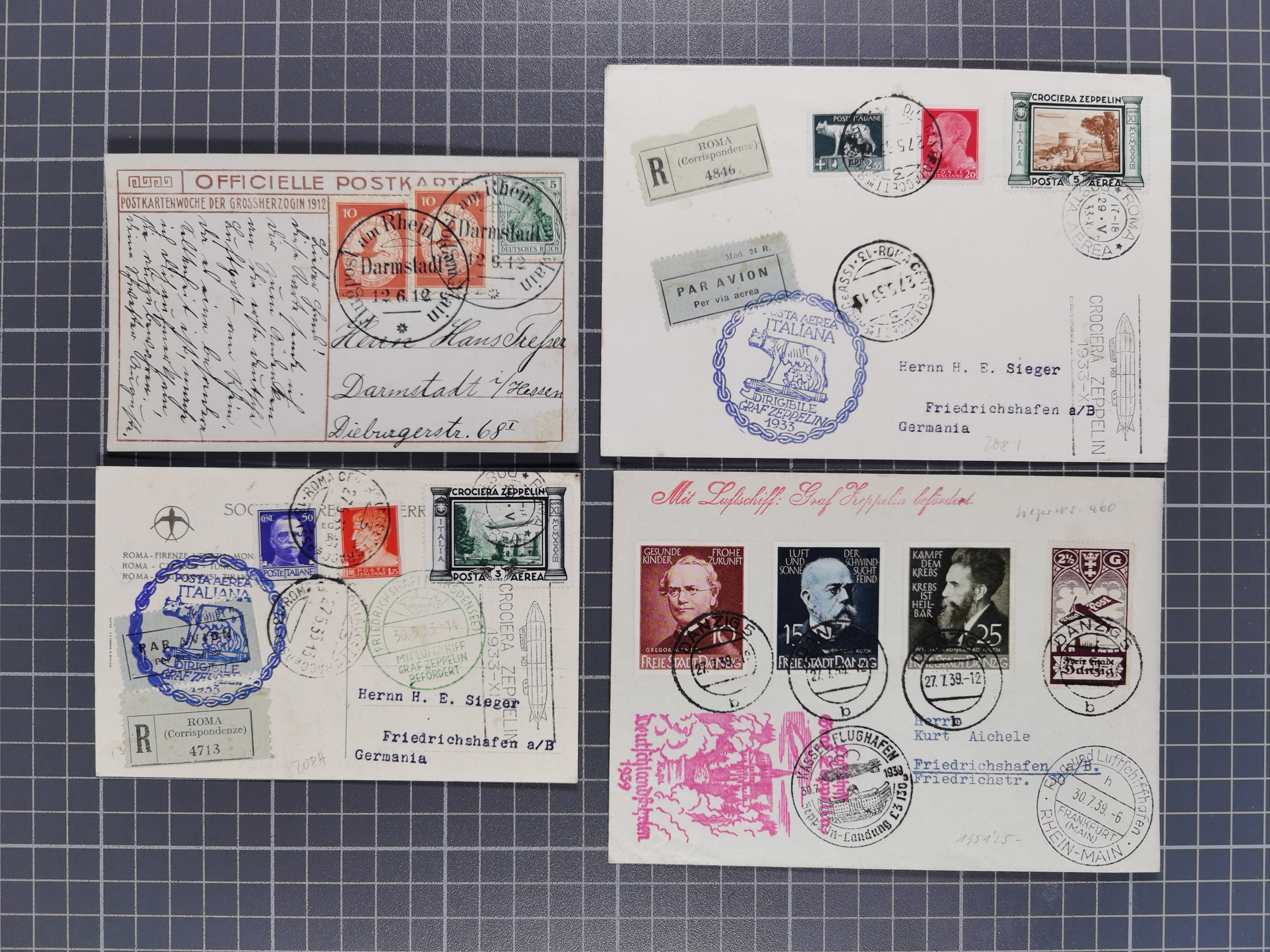 1912/38 (ca., interessante Partie, dabei über 100 Zeppelin-Belege, Karten mit 10 Pfg. und 20 Pfg. E.EL.P., Gute Zeppelin-Marken-Frankaturen, etc.
