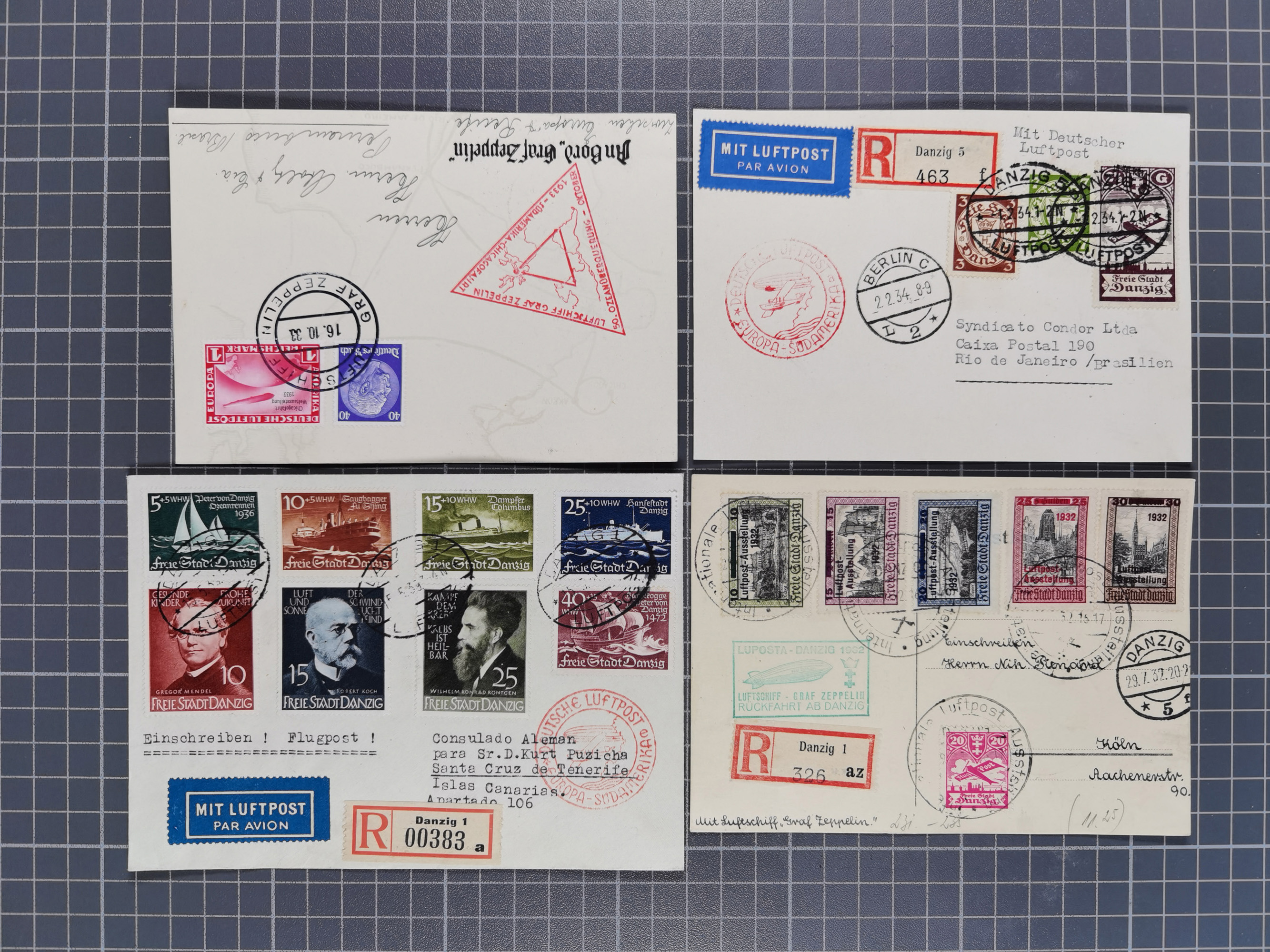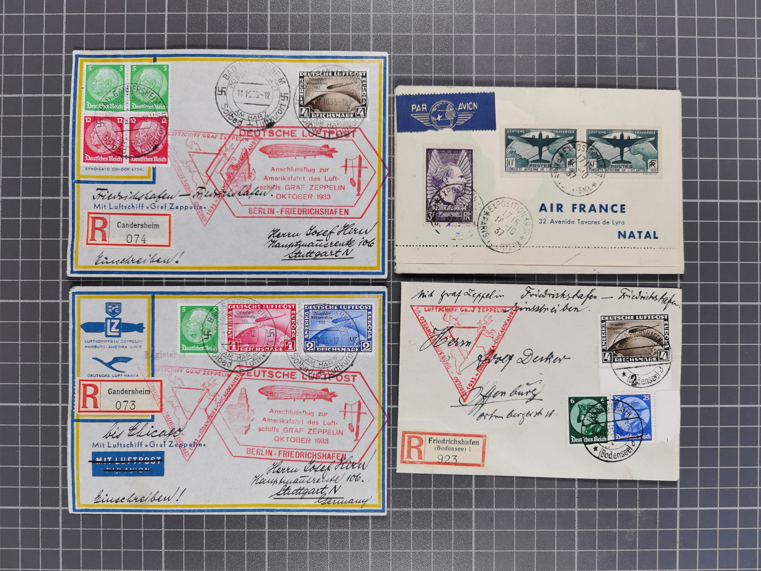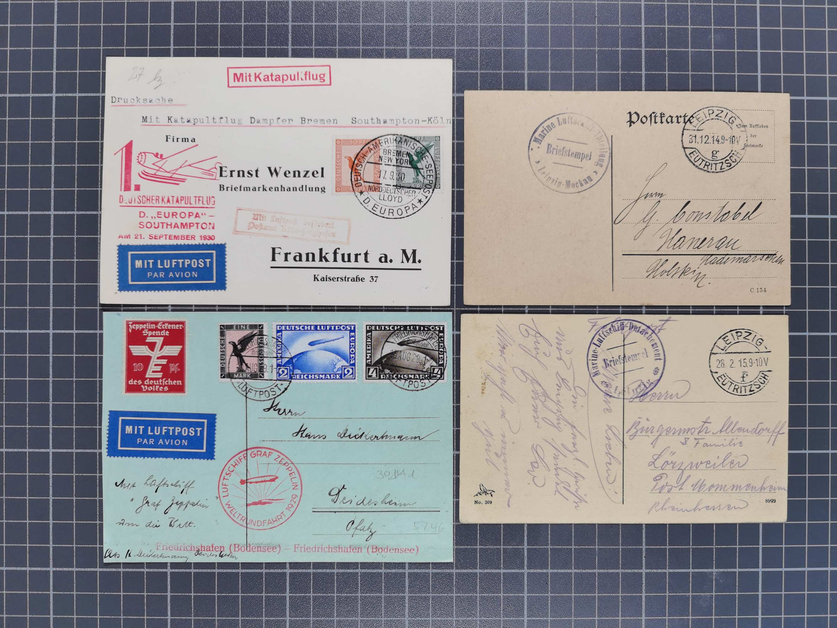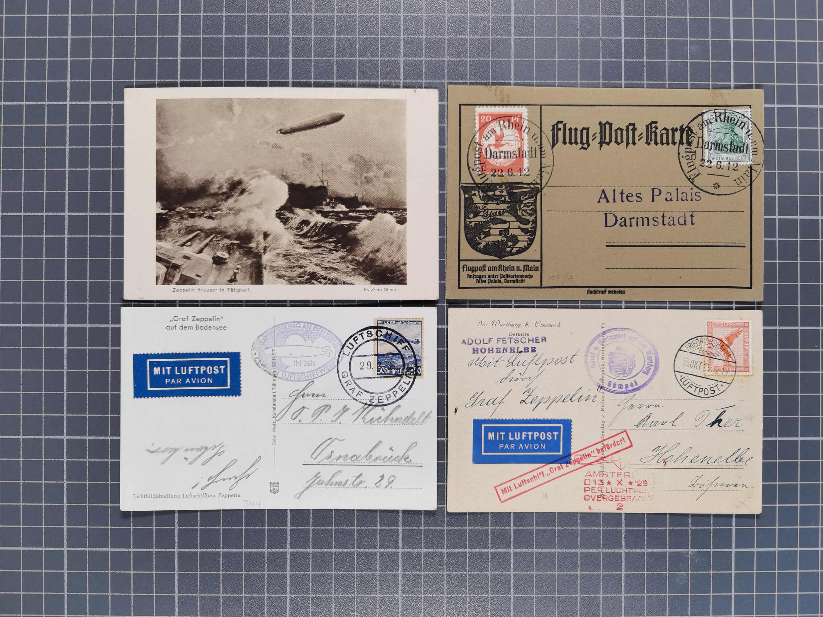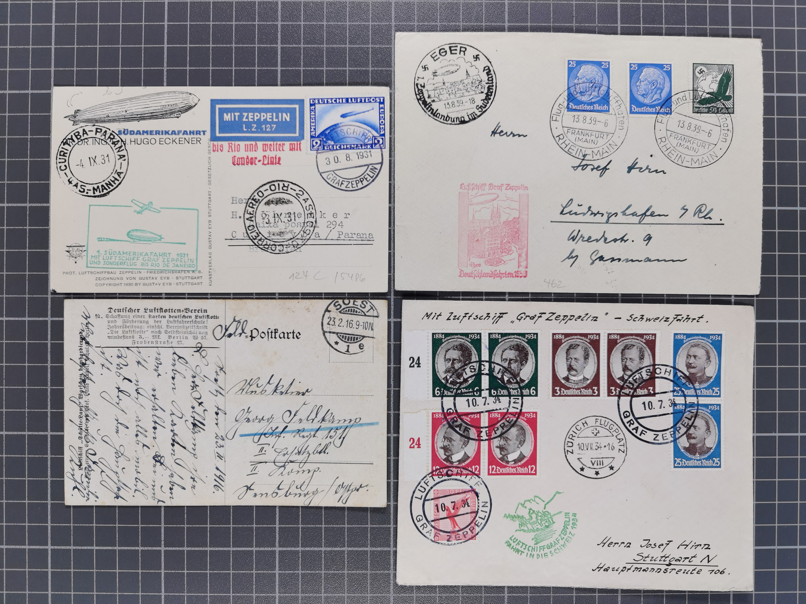 1912/38 (ca., interessante Partie, dabei über 100 Zeppelin-Belege, Karten mit 10 Pfg. und 20 Pfg. E.EL.P., Gute Zeppelin-Marken-Frankaturen, etc.