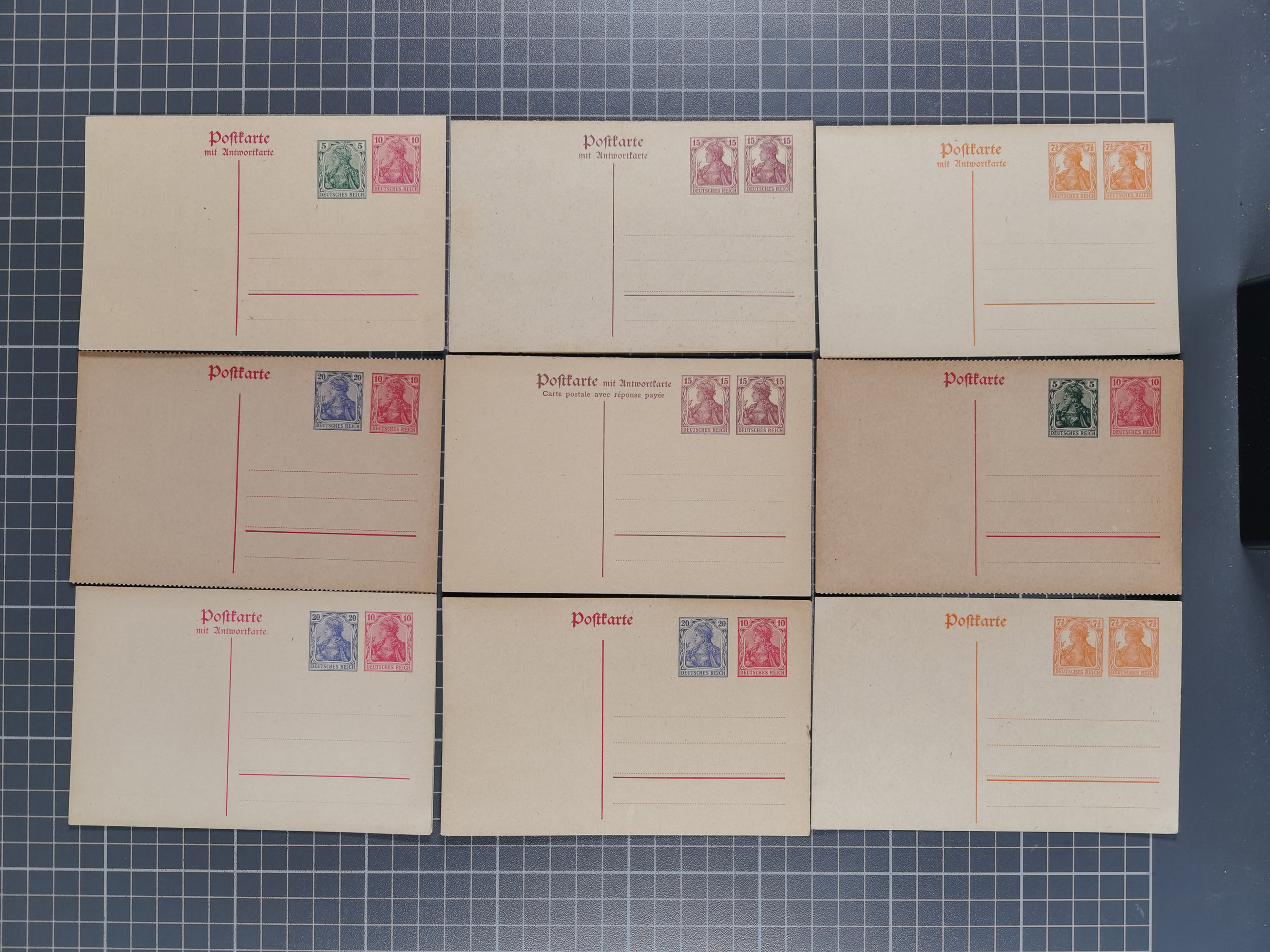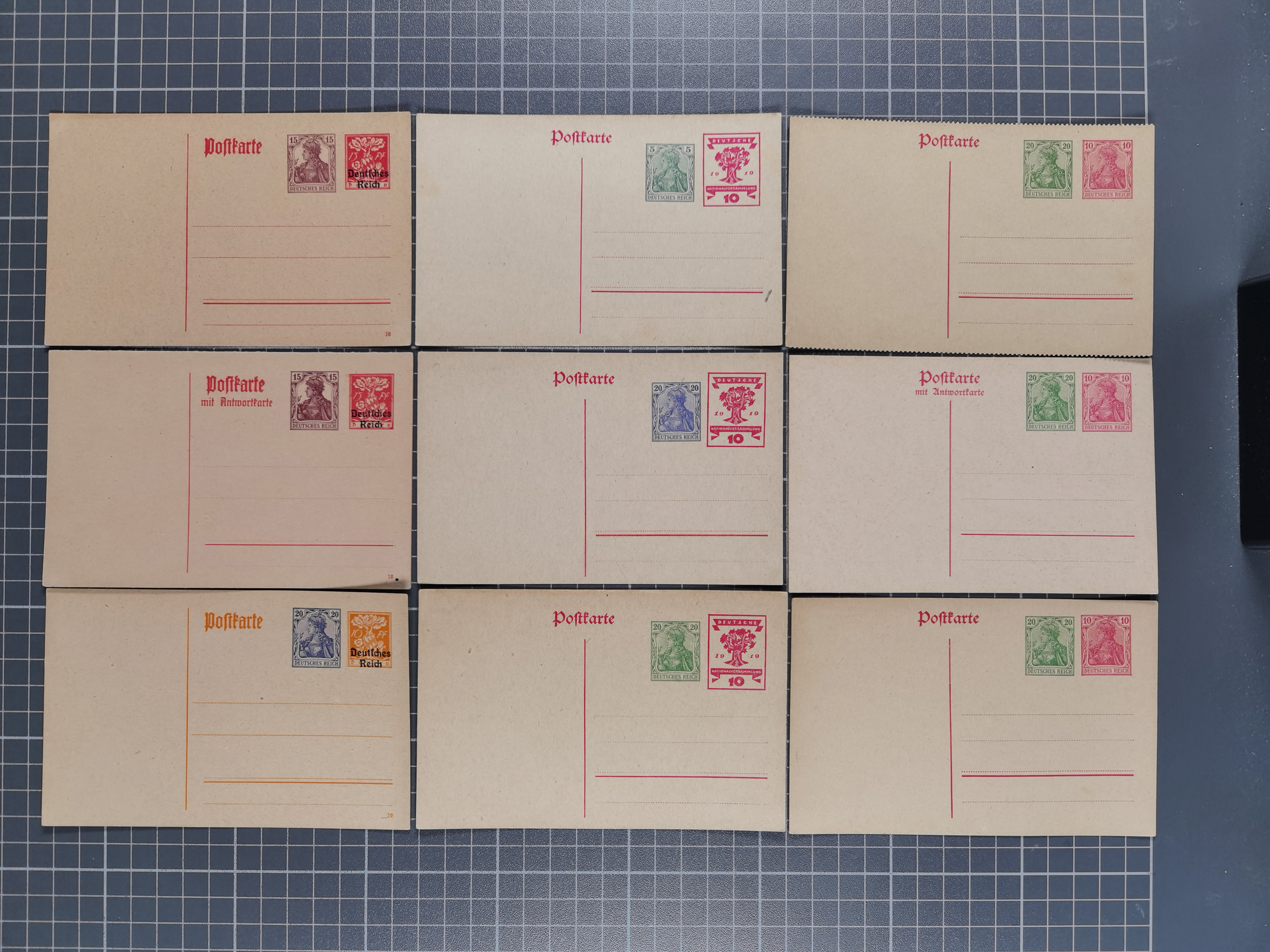 1906/20, Sammlung von 33 verschiedenen amtlichen Ganzsachen mit Germania-WSt.-Zudrucken auf private Bestellung (PZP), inkl. Doppelkarten und gezähnte Karten, alle Stücke tadellos ungebraucht, genaue Aufstellung liegt bei.